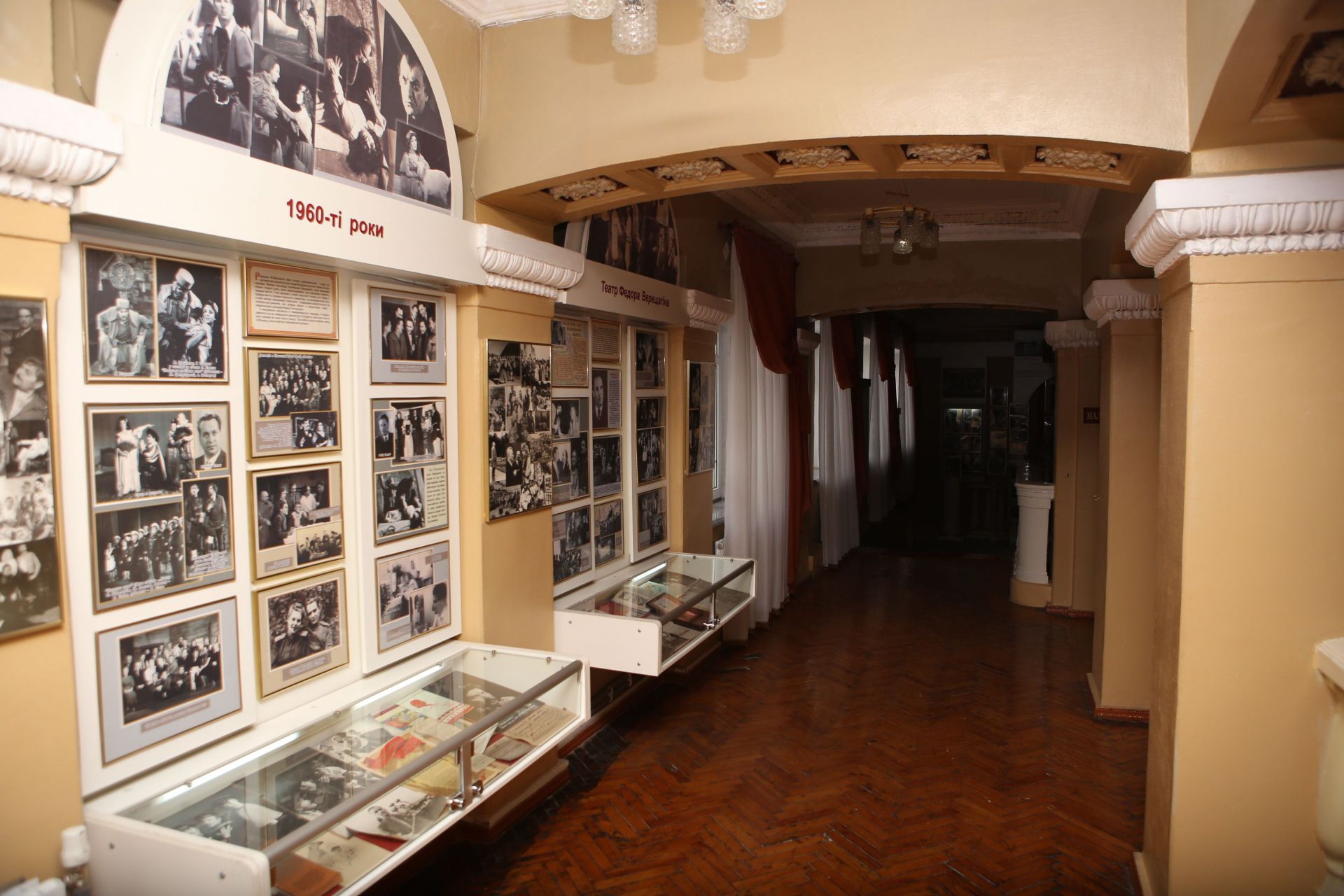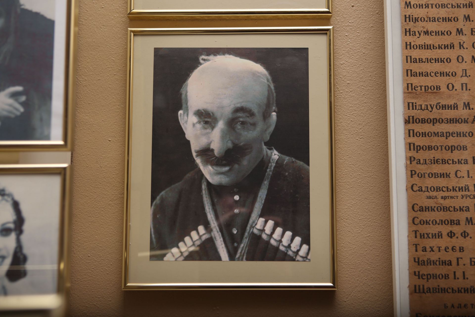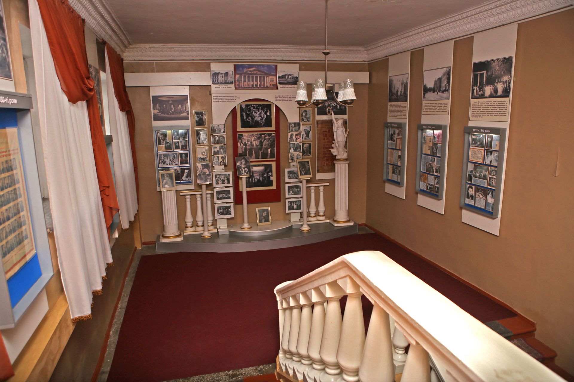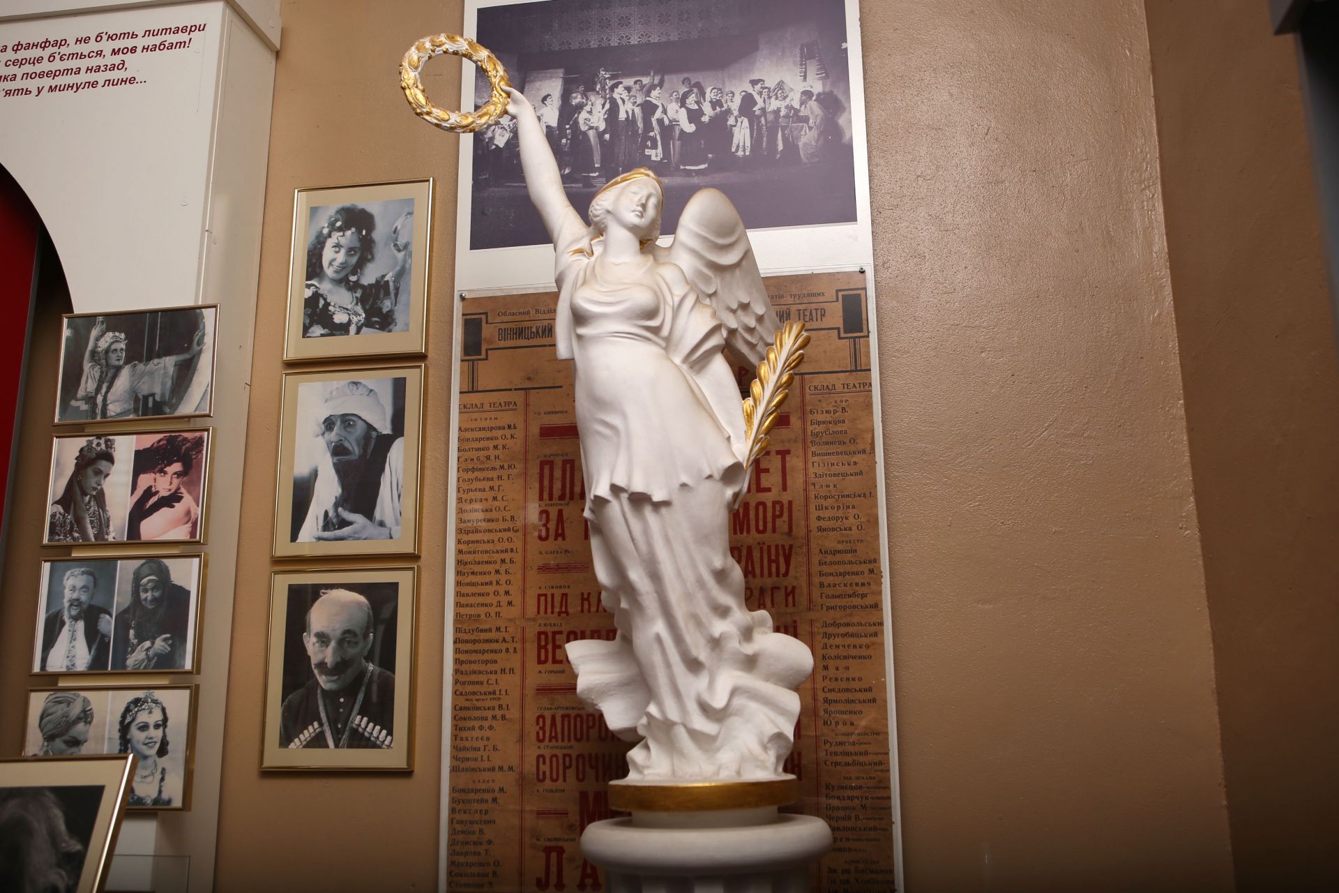 Спускаючись сходами вниз, в прольоті нас чекає імпровізована сцена. Тут багато фото акторів у гримі: