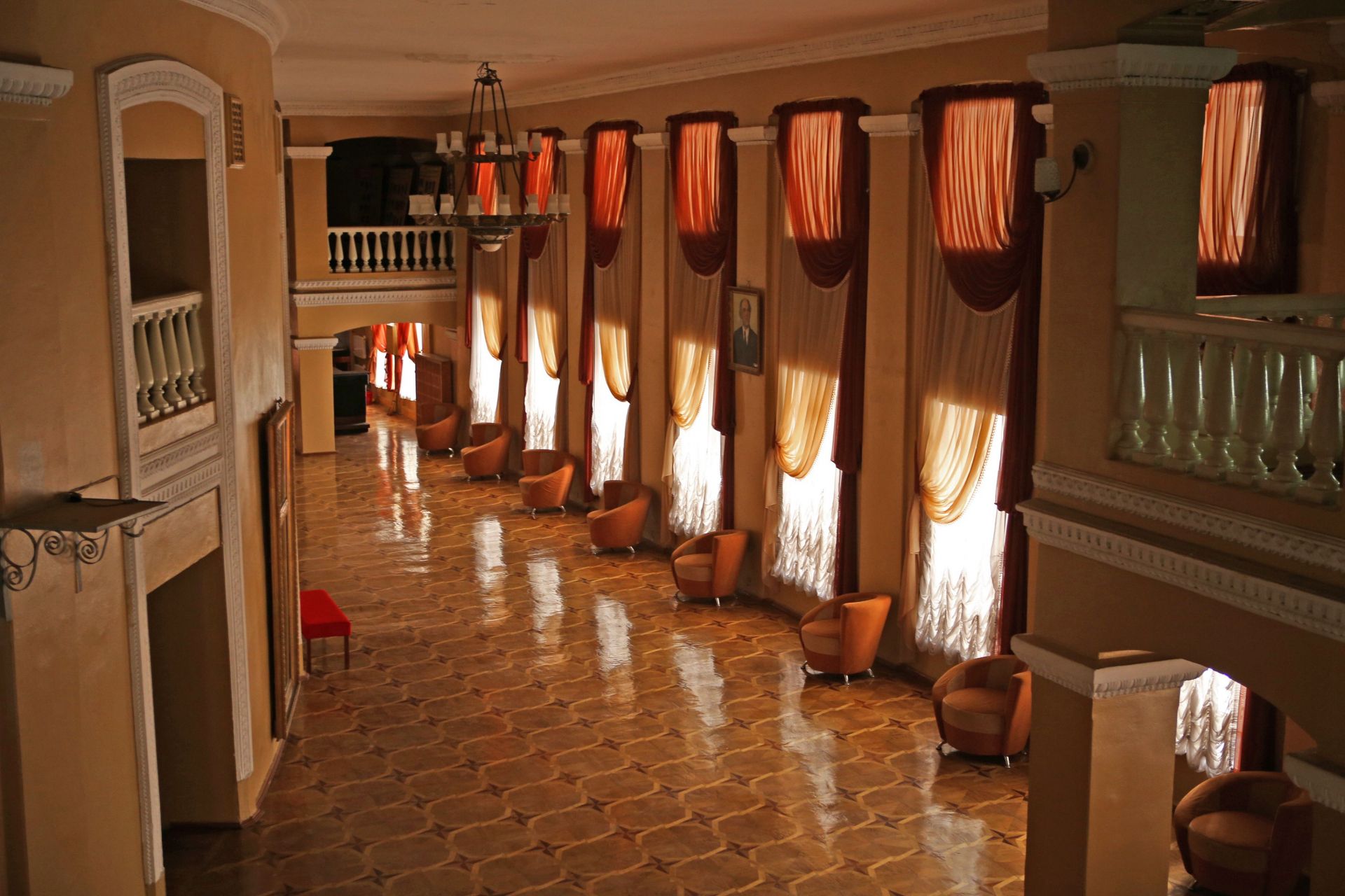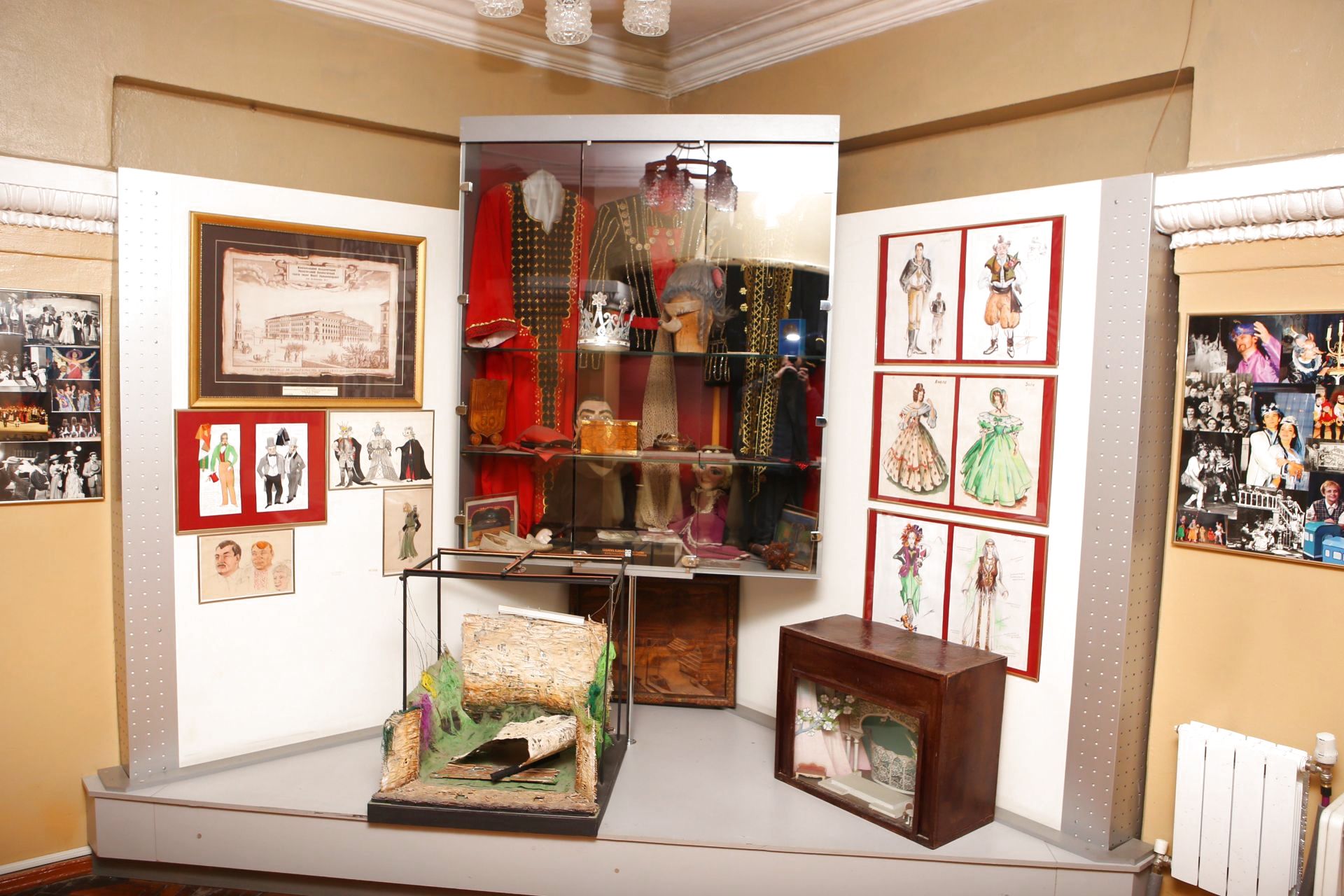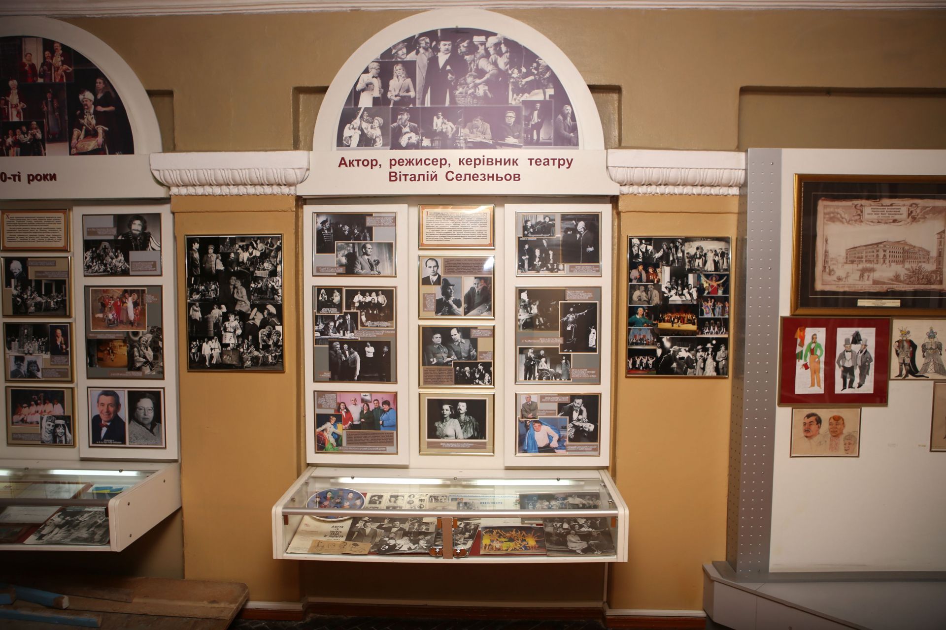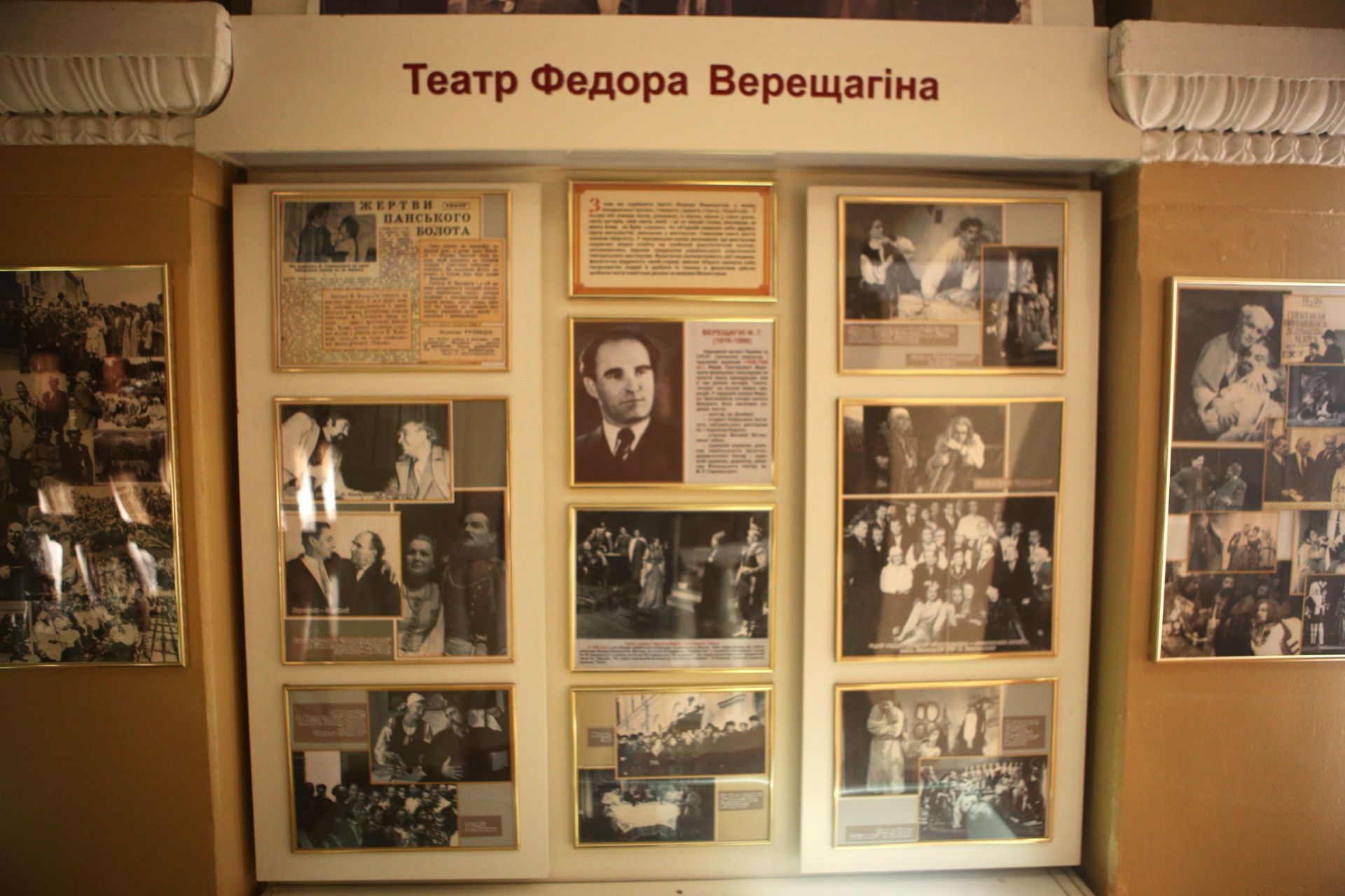 Спускаючись сходами вниз, в прольоті нас чекає імпровізована сцена. Тут багато фото акторів у гримі:
