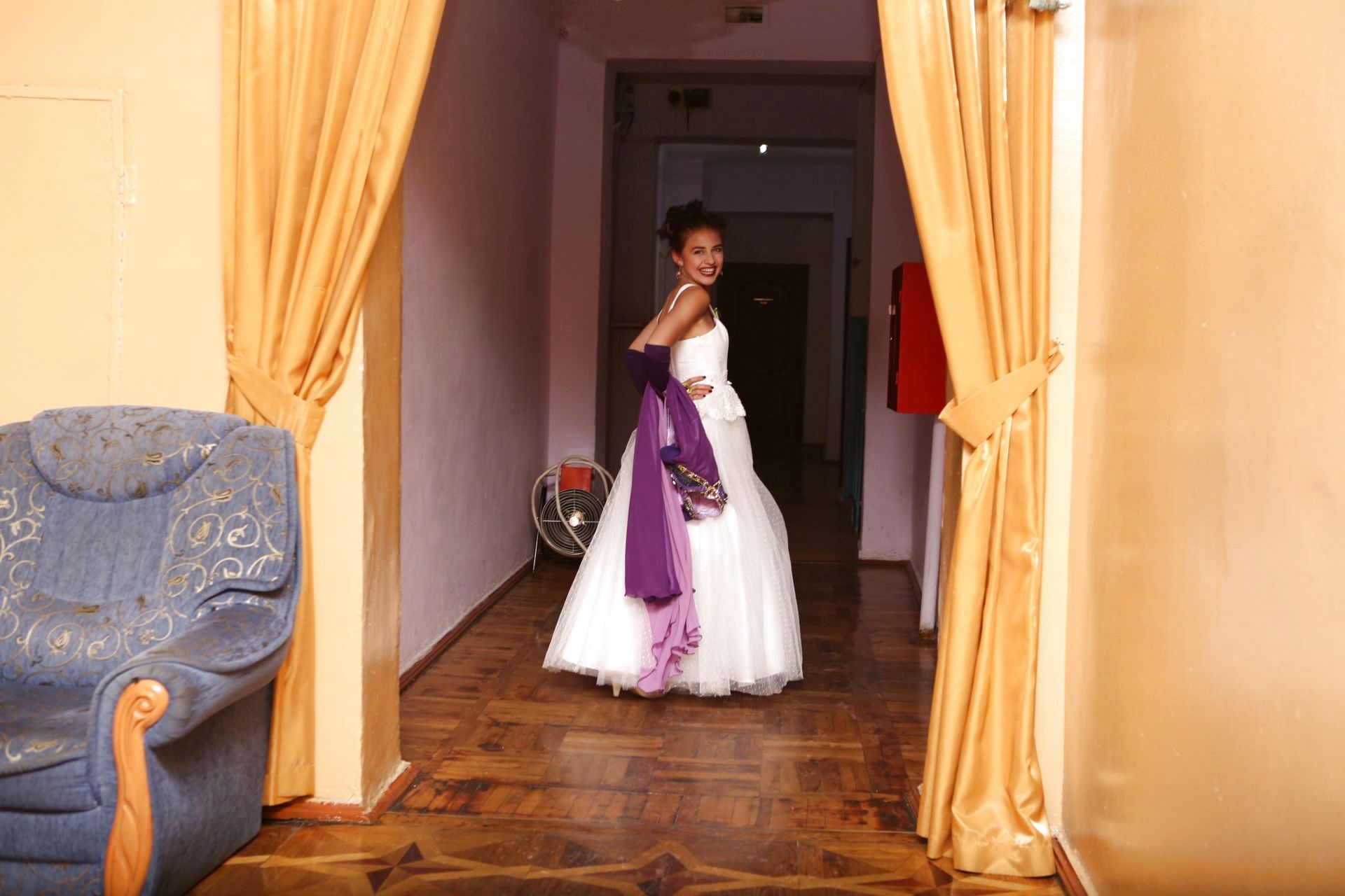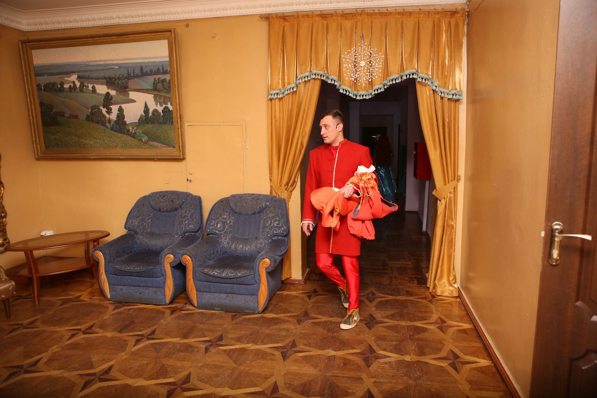 Сюди потрапляє небагато відвідувачів, а нам пощастило, бо дійшли до неї саме у час, коли завершилася вистава «Русалонька». У акторському фойє, перед сценою, ми зачекали, поки актори розійдуться у свої гримерні.