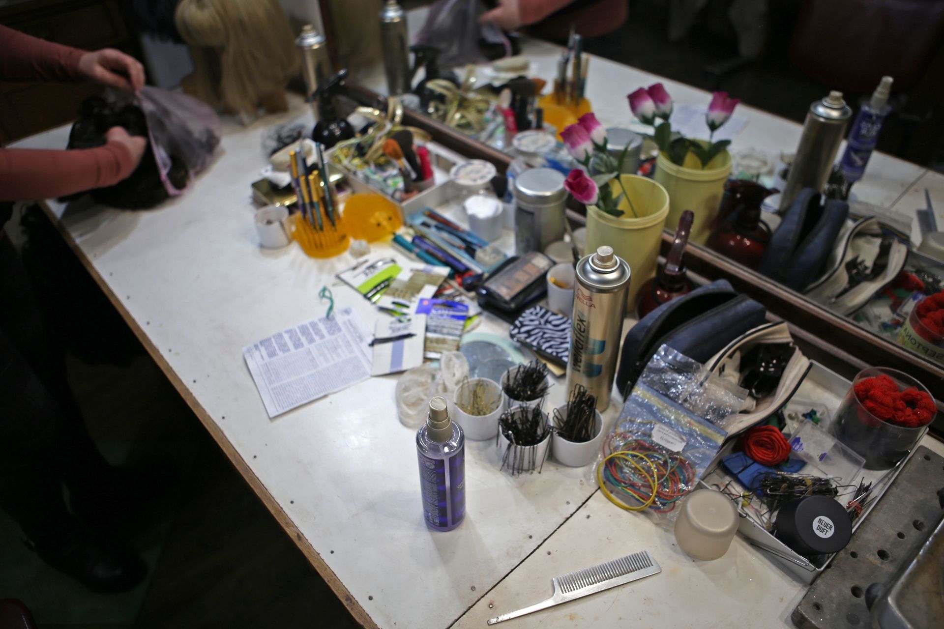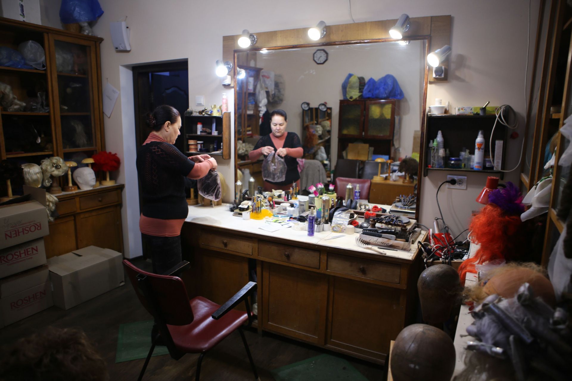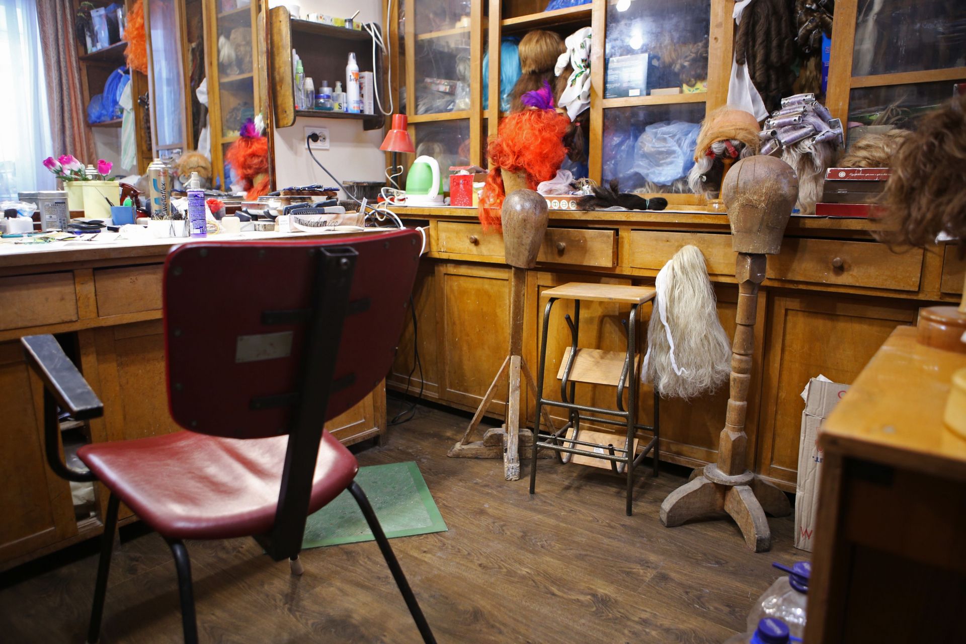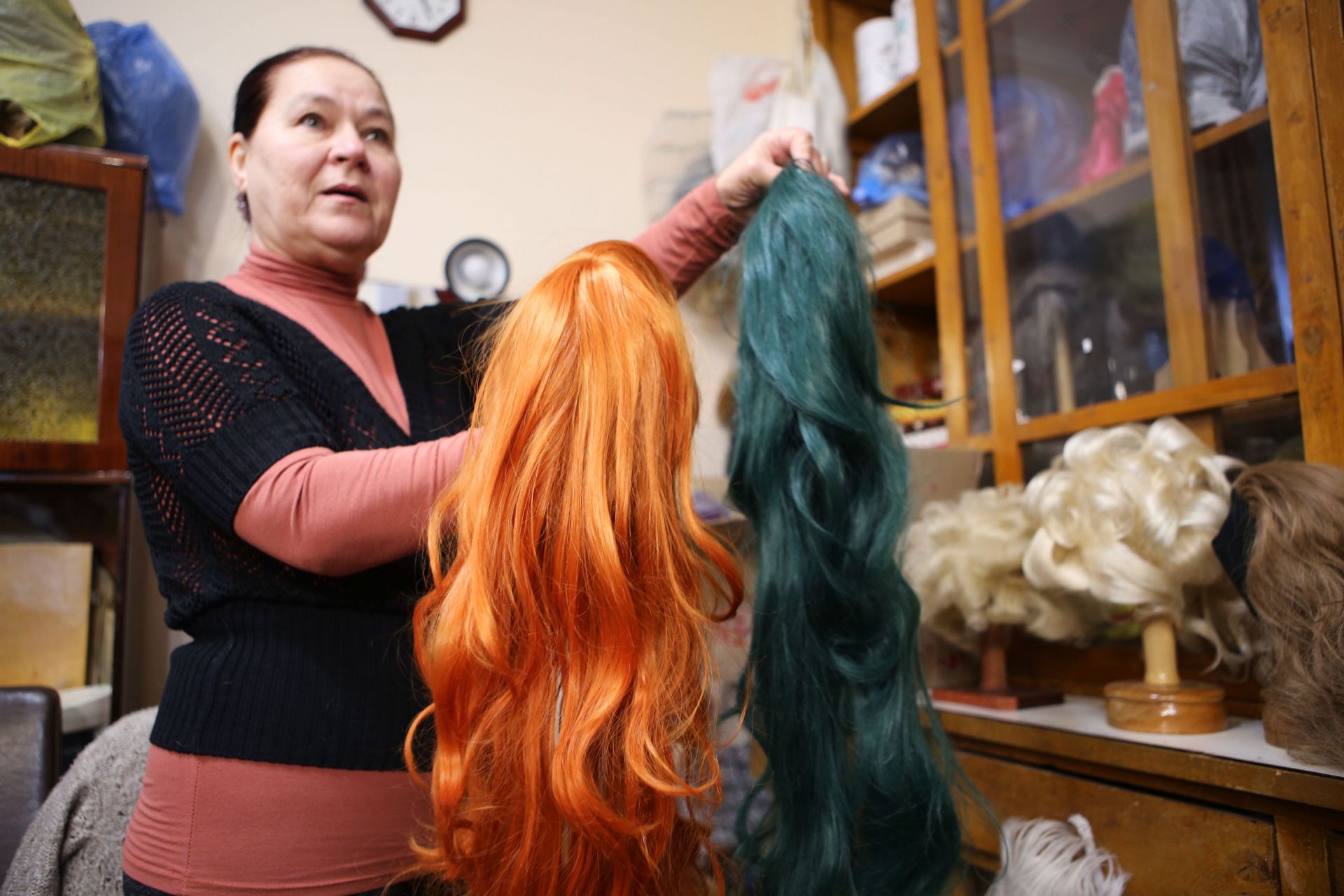 У будівлі театру також є окрема кімната, де не лише зберігаються всі перуки, але й виготовляються. І так само є людина, яка за ними доглядає.