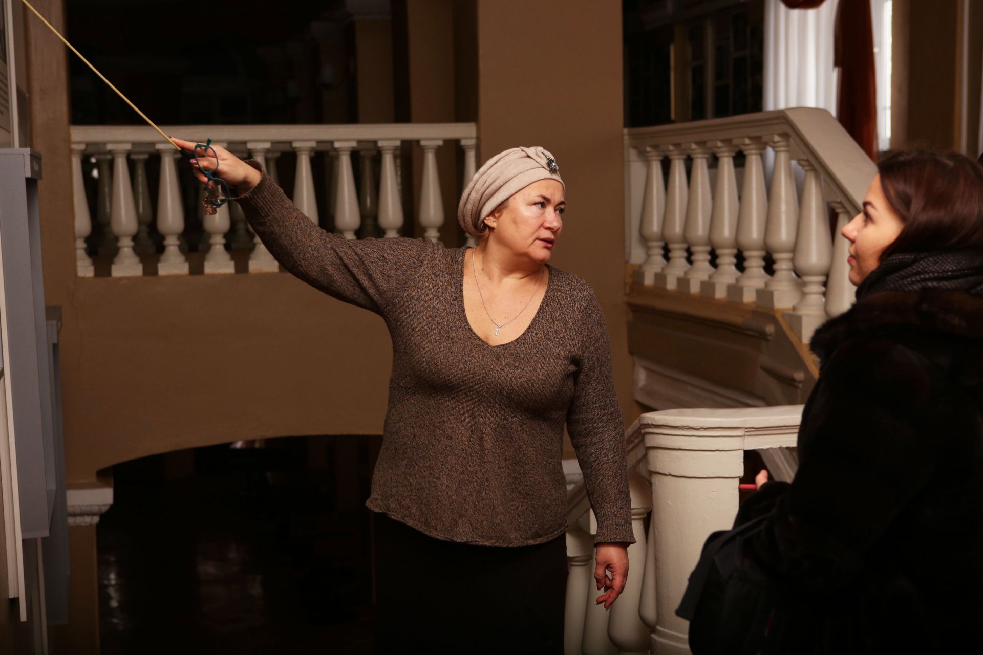 Ми заходимо до театру зі сторони «чорного» входу. Наші прізвища та імена на прохідній одразу записує жінка літнього віку. Разом із Оксаною ми піднімаємося на другий поверх, де нас зустрічає вже інша жінка, чий голос одразу викликає прихильність. Це Світлана Володимирівна Фицайло – керівник літературно-драматургічної частини. Саме вона проводить бажаючих коридорами театру та розповідає про його життя.