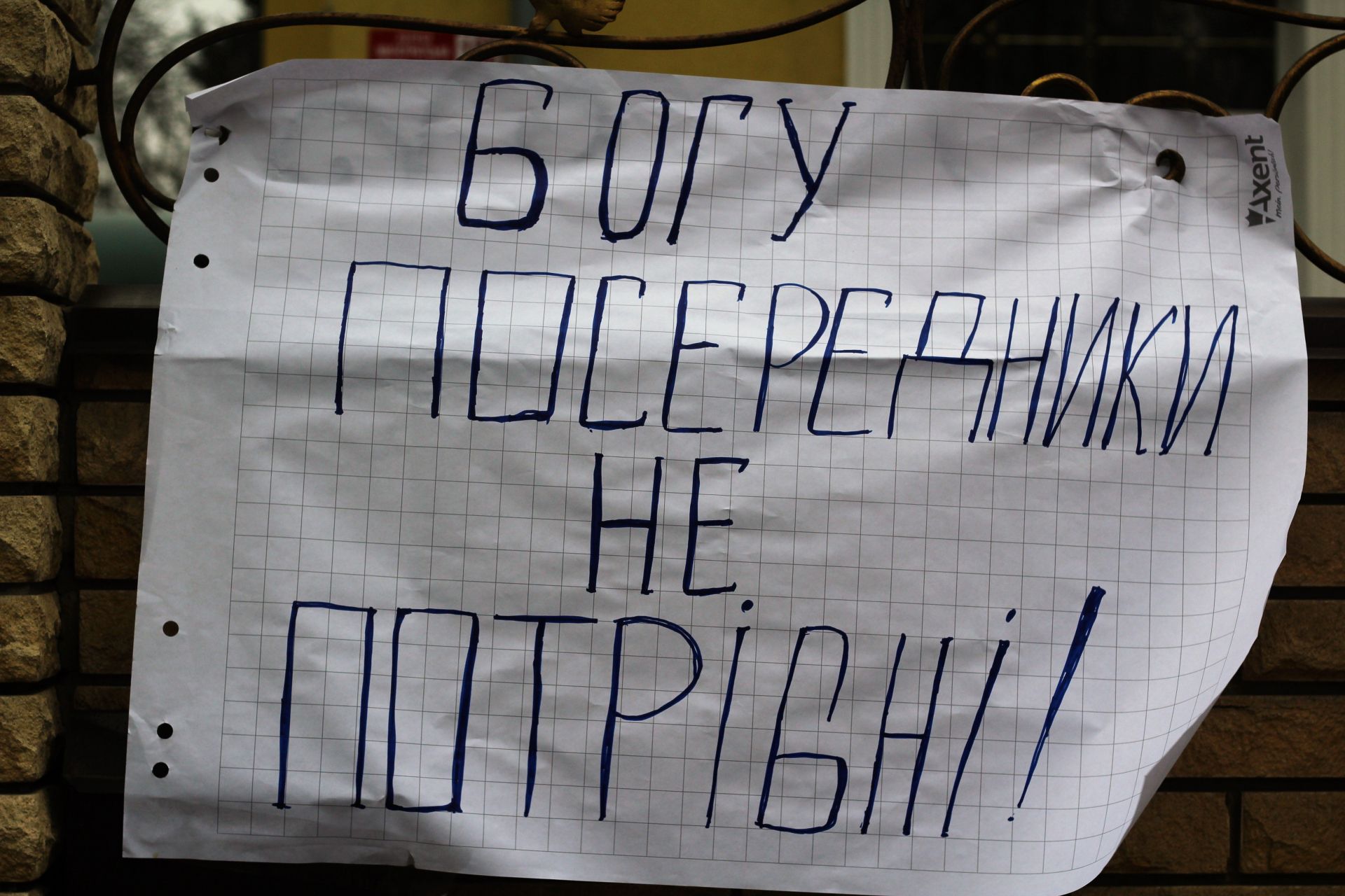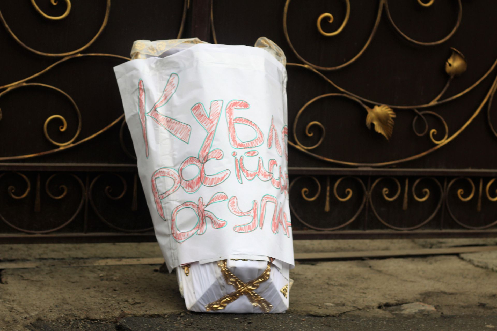 «В цих стінах померла віра». Під вінницьку єпархію московського патріархату принесли іграшки і труну