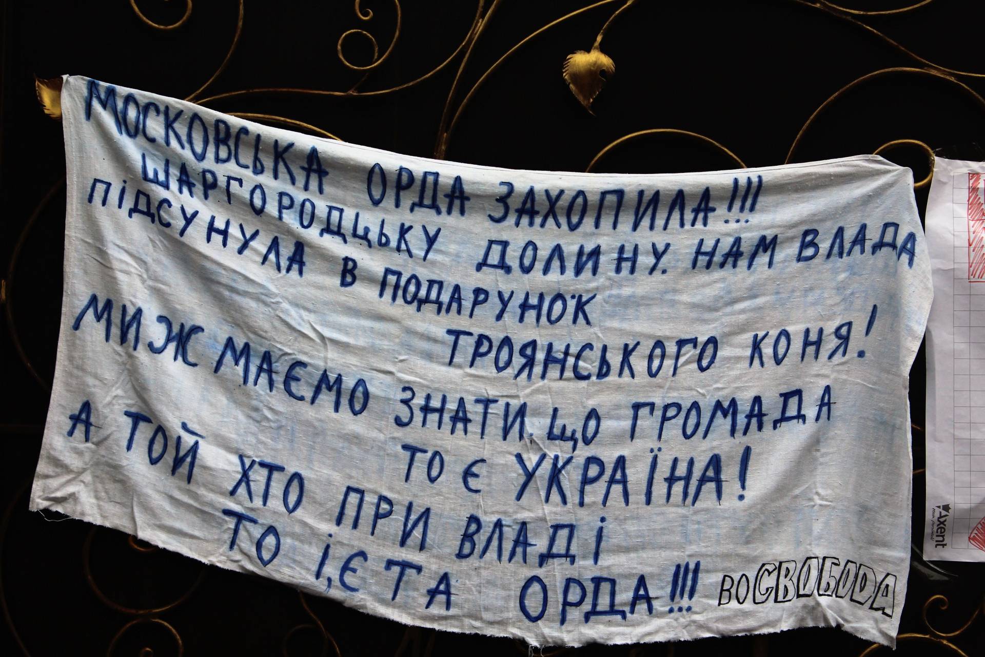 - У Вінниці, біля будинку Вінницької єпархії УПЦ Московського патріархату, приблизно десять людей влаштували акцію. Вони розмістили на паркані плакати з різноманітними написами і поклали дитячі іграшки.