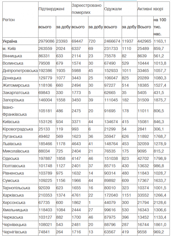 У нашій області за добу виявили 633 нових випадки та 23 летальних.