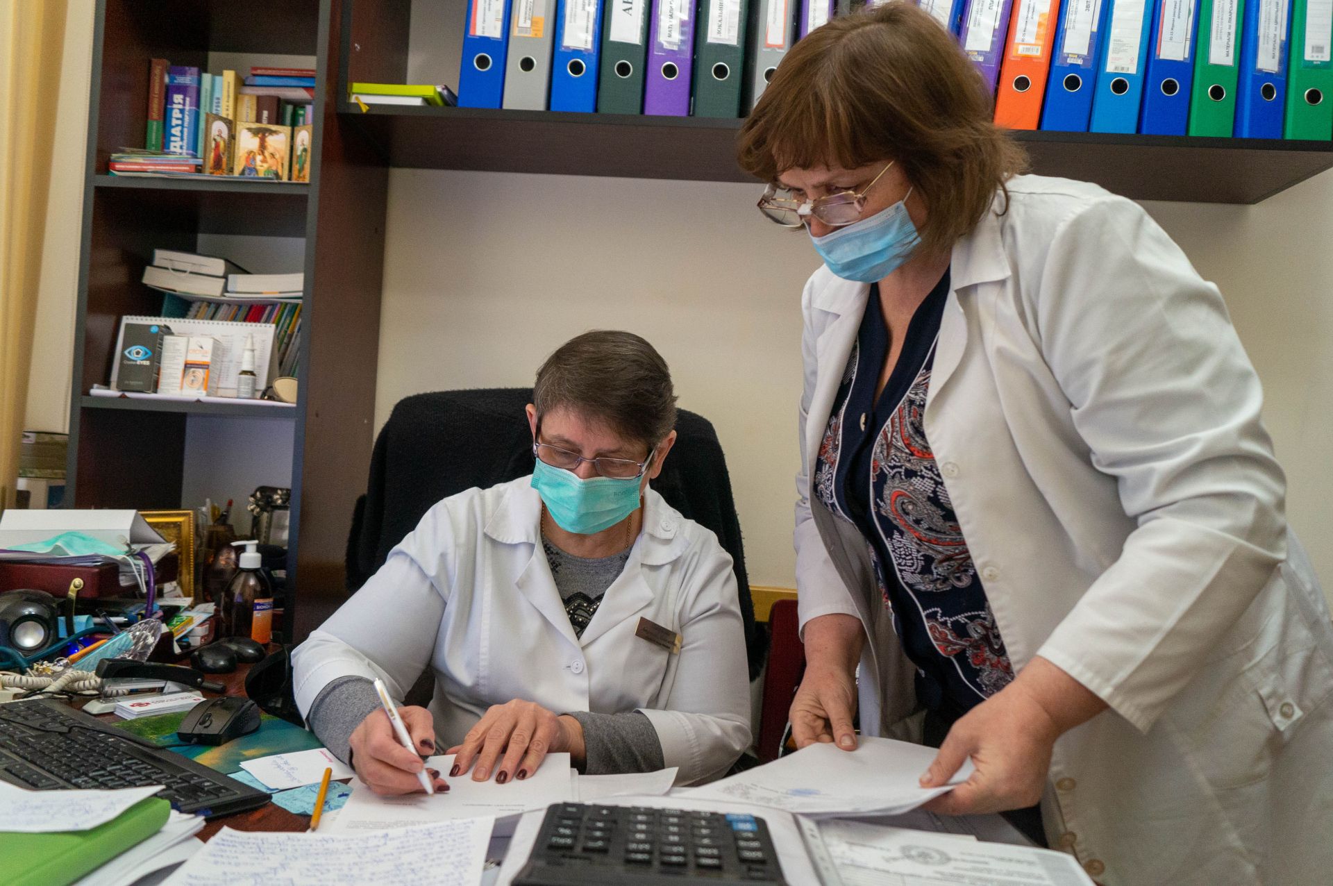 — Поки у нас чергує одна бригада, яка складається з лікаря, медсестри та санітарки, — розповідає Людмила Бровінська. — У боксах з хворим персонал працює лише в засобах захисту в повному об’ємі. На даний час ми забезпечені всіма засобами захисту необхідними для лікування хворих. Але, враховуючи, що потік хворих може збільшуватись, цих засобів вистачить на дуже короткий термін.