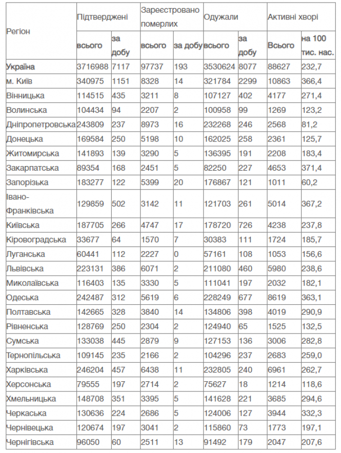 - Кількість інфікованих COVID-19 людей сягає понад 3,7 мільйона, одужали — 3,5 мільйона.
