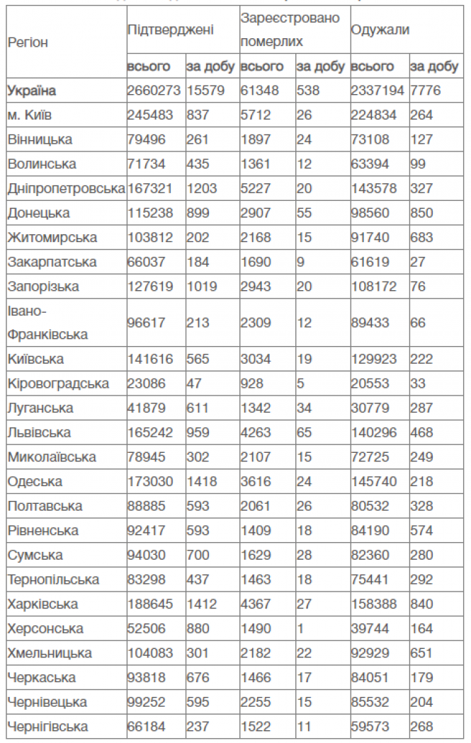 У нашій області за добу виявили 261 новий випадок та 24 летальних.