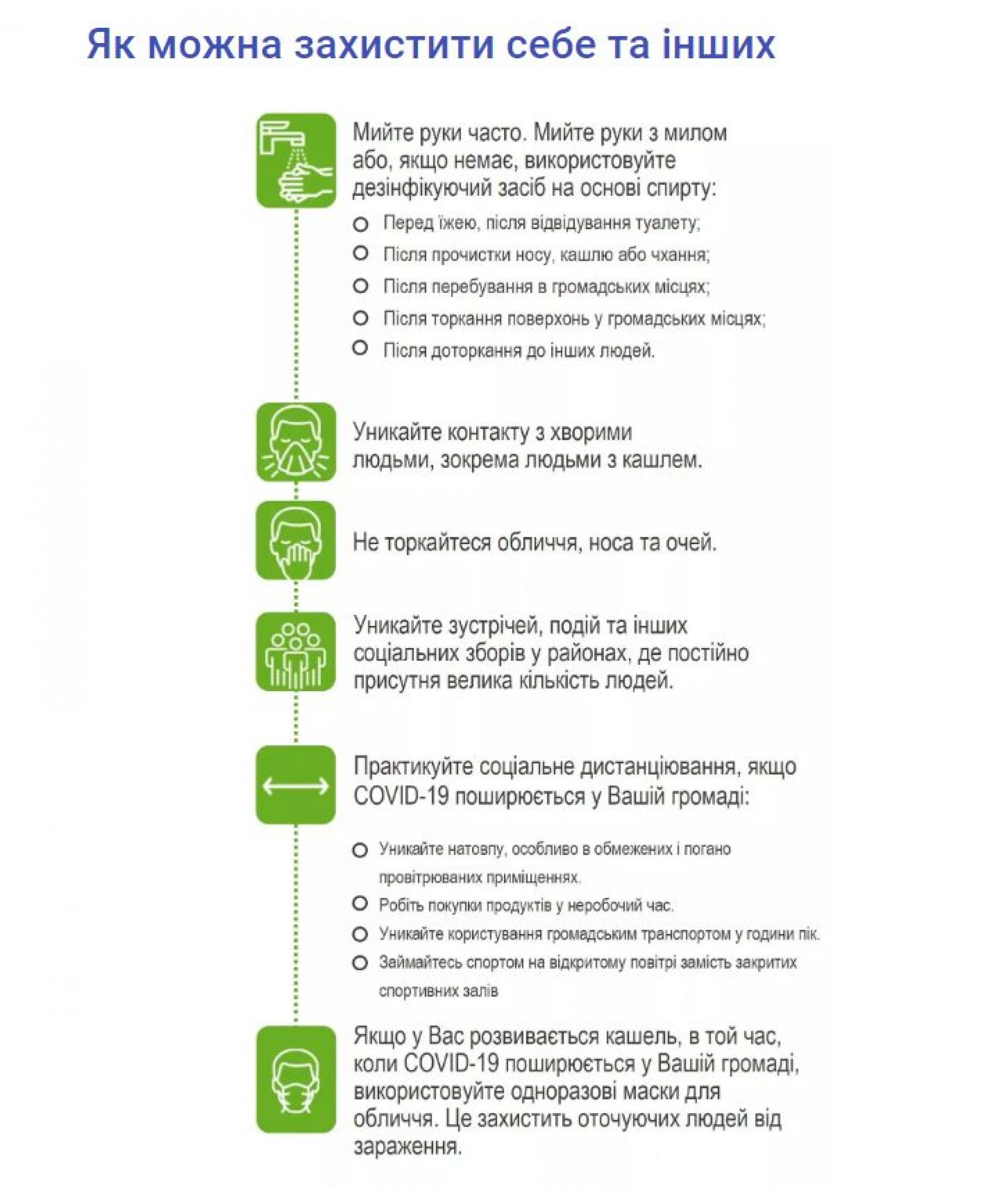- не торкайтеся свого обличчя, зокрема очей, носа та рота.