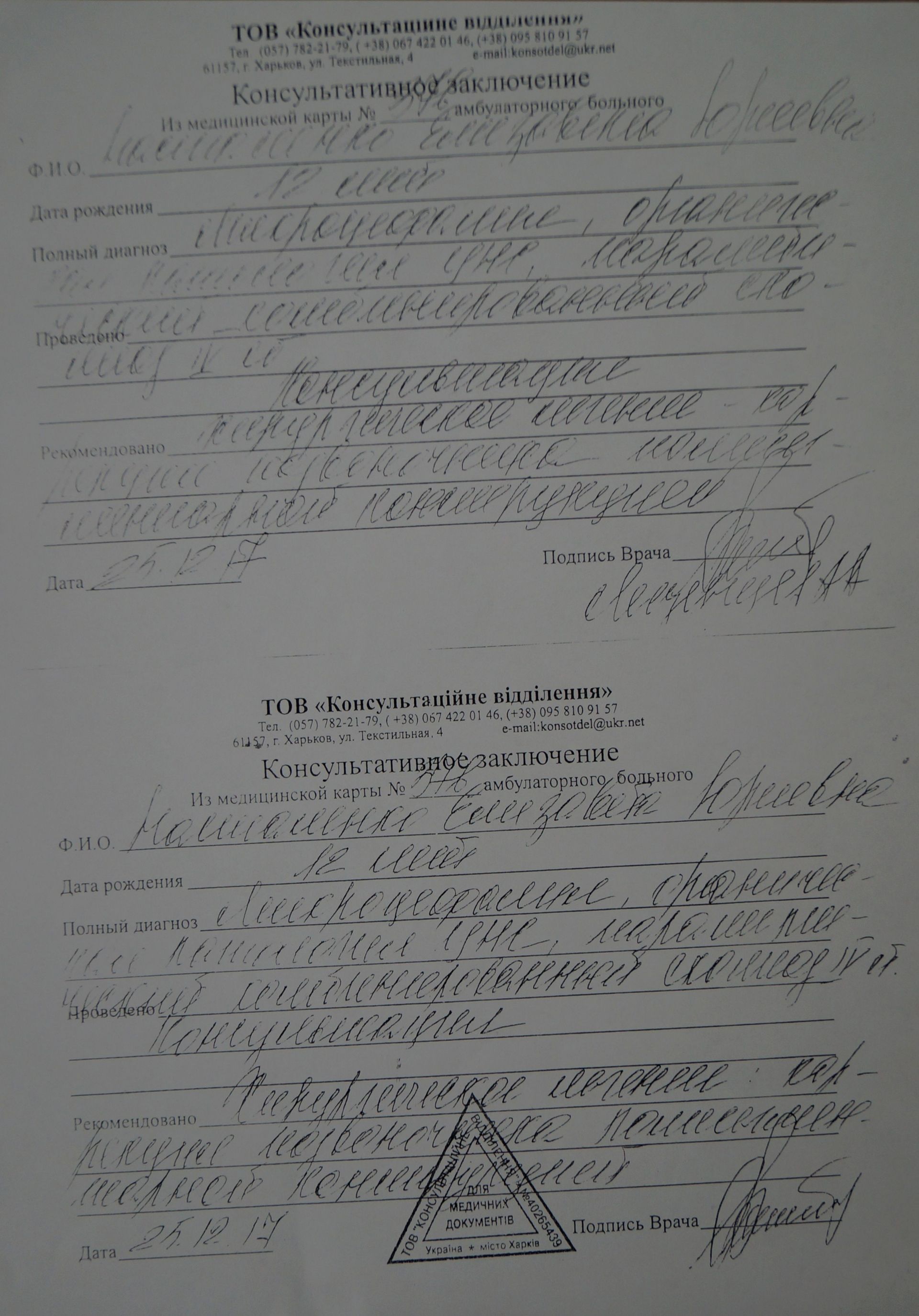 – В Україні нам можуть зробити операцію але з “неростущою” конструкцією. В такому випадку доведеться робити повторні операції. А це завжди ризик, – каже Юрій Насталенко. – Професор Мезенцев з Харкова сказав, що міг би зробити потрібну операцію Лізі, але тільки в кінці осені. Тоді в нього буде необхідна апаратура. Але він не впевнений, що вона дочекається її. Хвороба прогресує, внутрішні органи пошкоджуються. Ми можемо втратити дитину.