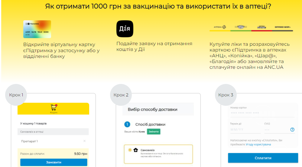 Із 24 січня вінничани можуть витрачати 1000 гривень, отримані у межах програми «ЄПідтримка» за вакцинацію від COVID-19, на придбання ліків в аптеках та інтернет-аптеках. Щоправда, наразі можуть це робити лише містяни, старші 60. Вік людини перевіряє банк.