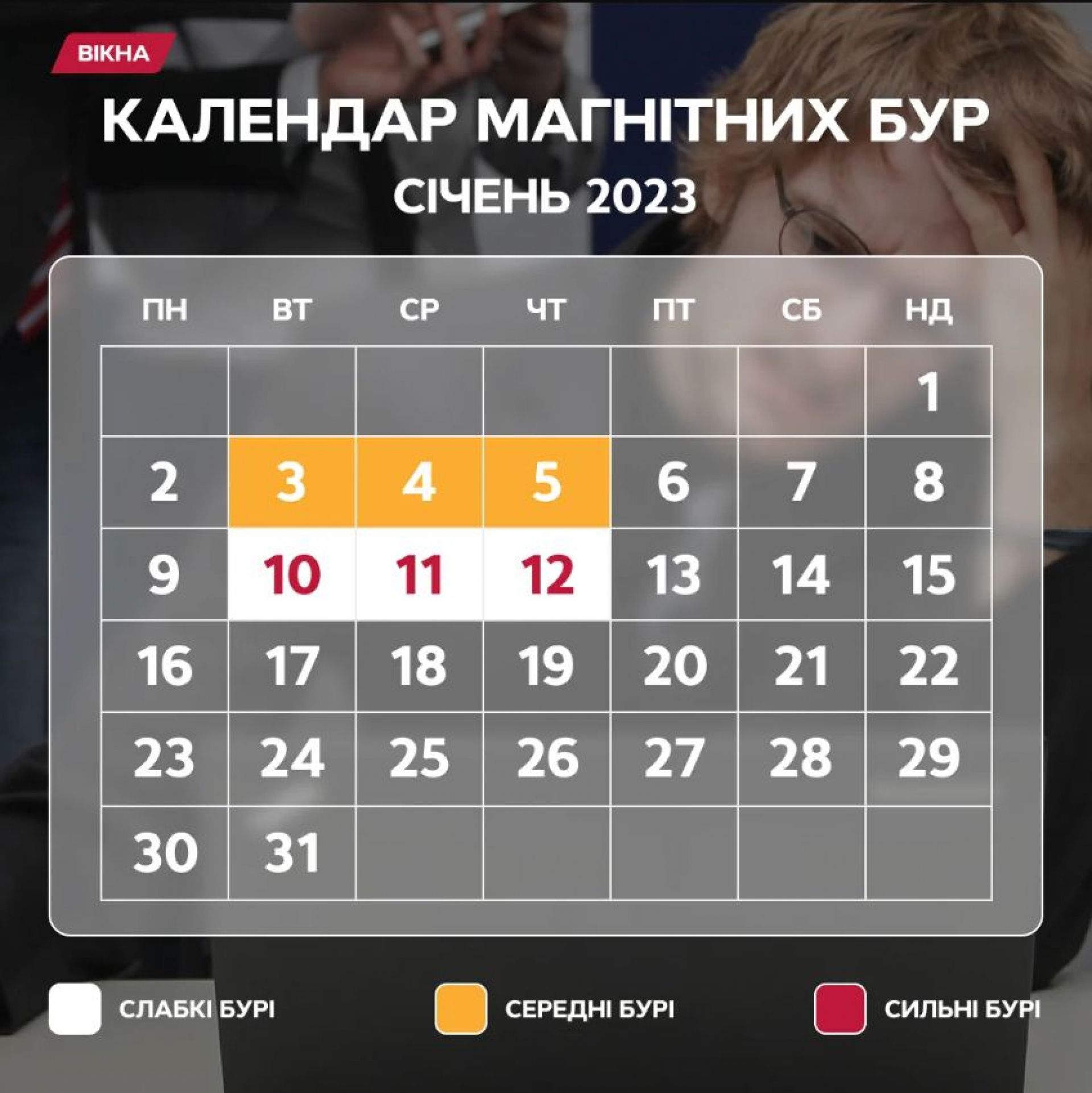 У січні будуть дві хвилі магнітних бур: середньої та слабкої інтенсивності. Перша хвиля відбудеться на початку січня, з 3 по 5 число.