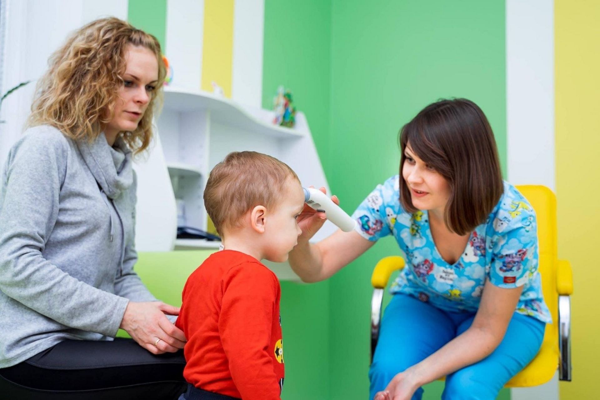 Консультація лікаря педіатра включає збір анамнестичних даних, повне клінічне обстеження дитини, перевірку наявності ознак гострої хвороби або ж хронічних станів, а також вимір зросту та маси тіла, визначення гостроти зору, слуху, постави та плантографія.