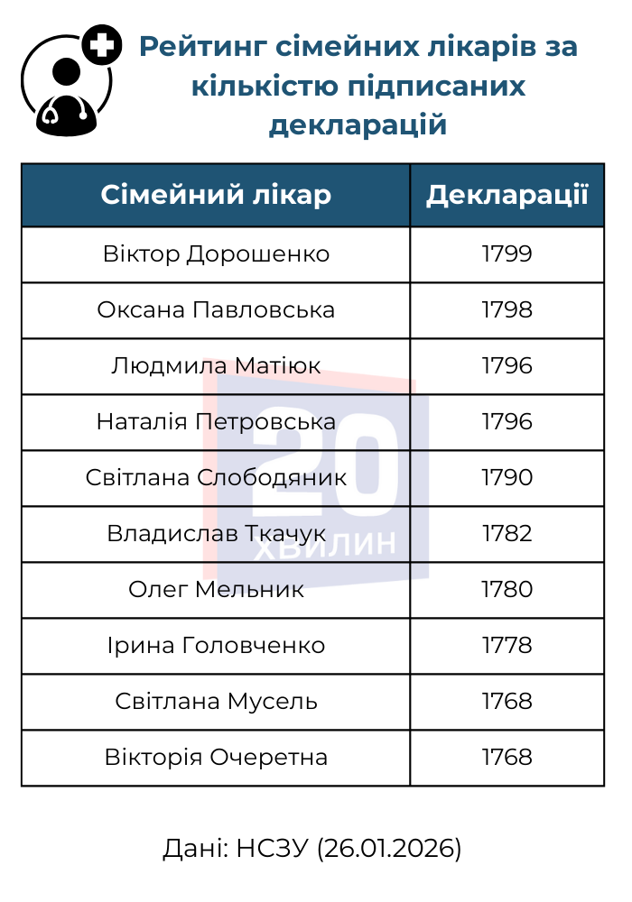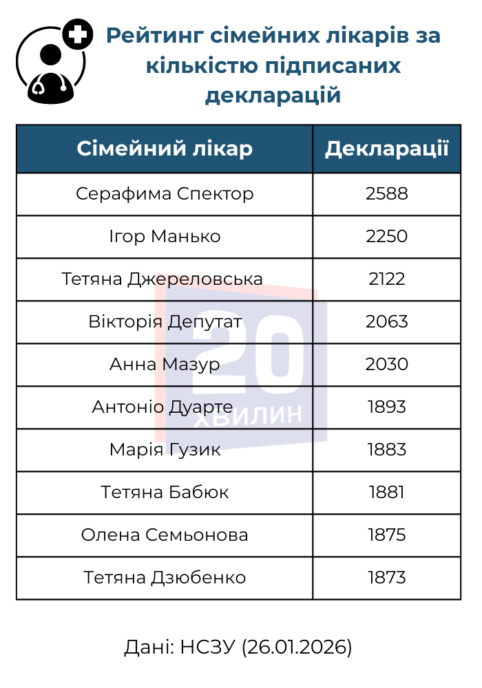 До переліку найбільш популярних сімейних лікарів із перевищеним лімітом входять: