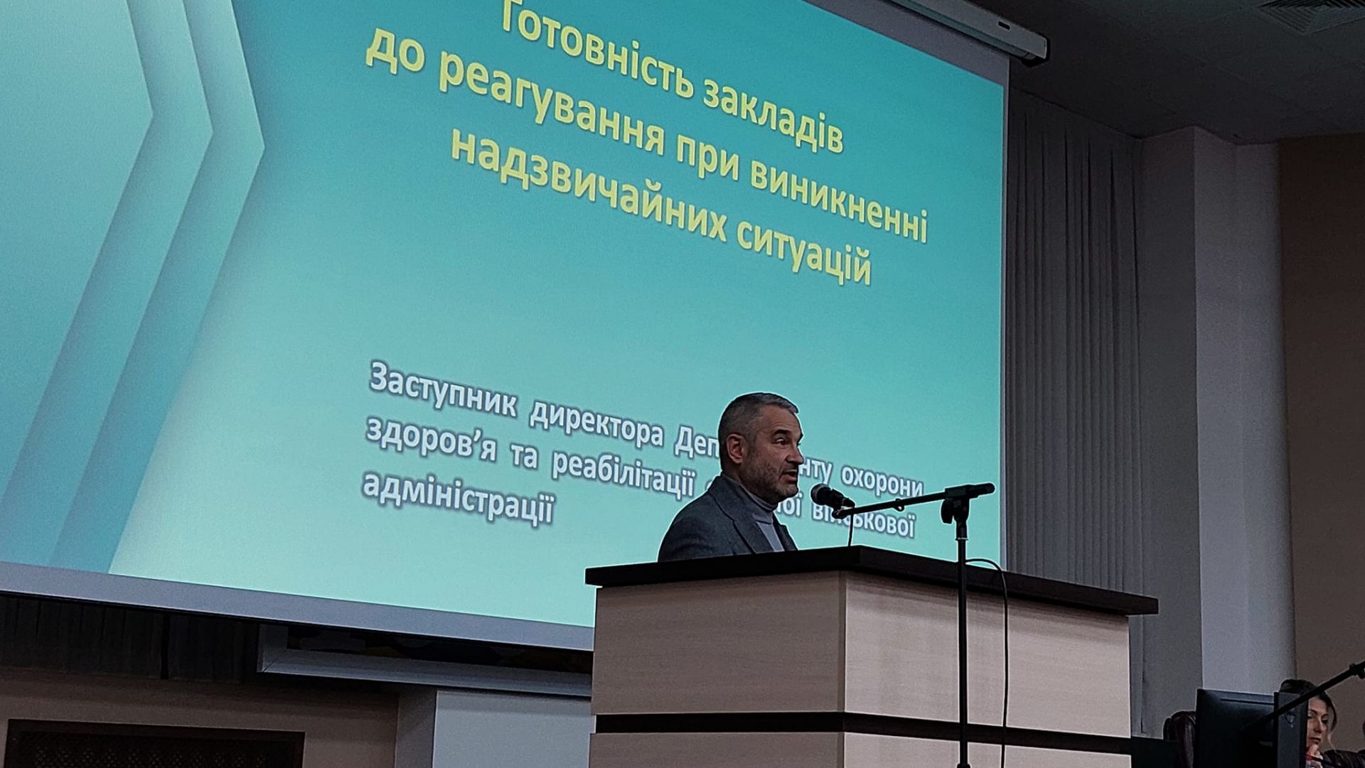 Далі директорка департаменту охорони здоров'я Вінниччини Ольга Задорожна відзначила, що останнім часом ми всі читали в медіа, про ті події які відбуваються у медицині. Це негативний імідж для всієї галузі. Вона наголосила, що це неприпустимі випадки під час війни, яких немає бути.