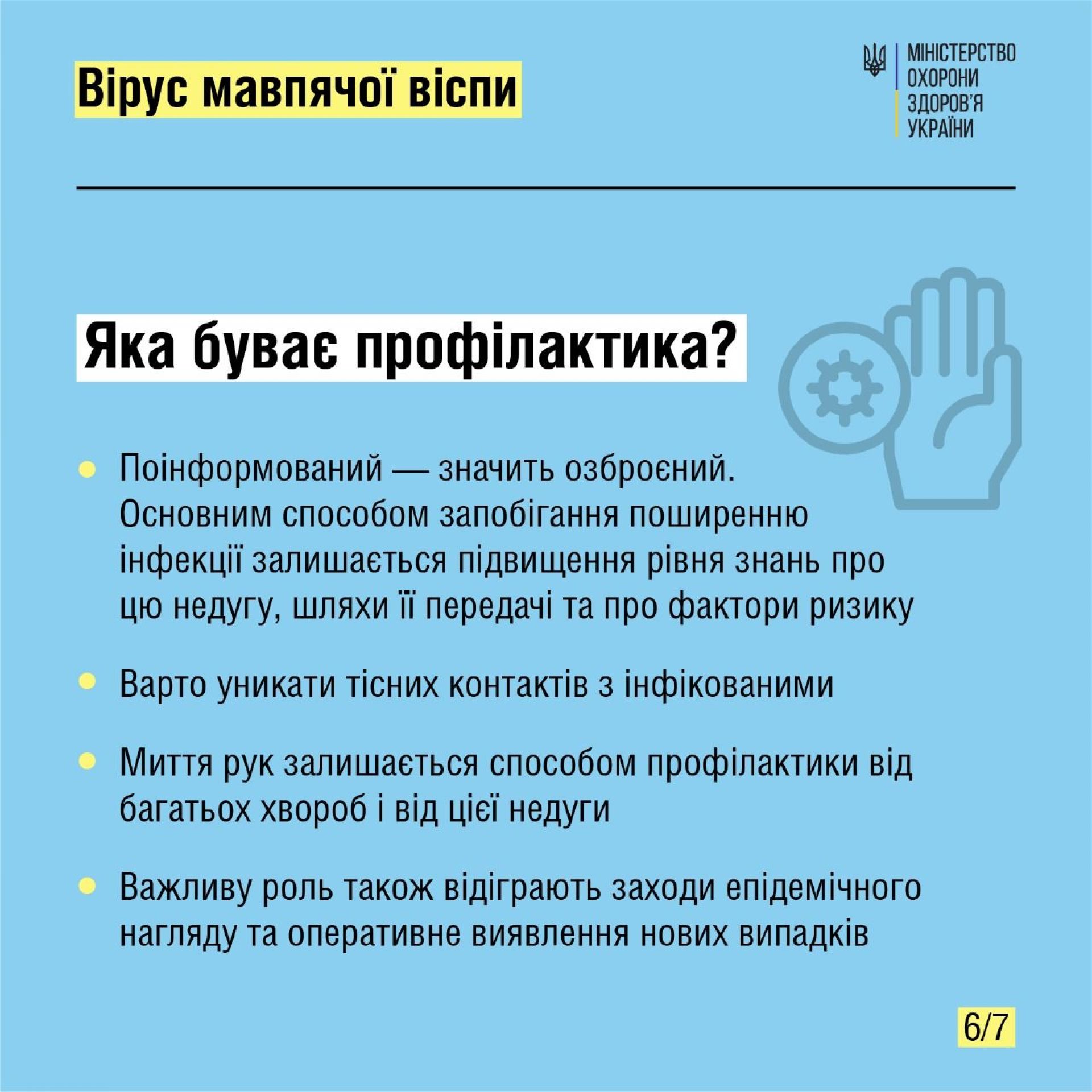 — Щойно з’явиться нова інформація щодо хвороби, МОЗ повідомить про неї додатково, — зазначають у Міністерстві охорони здоров'я України. — Що важливо запам'ятати? Не варто панікувати. В Україні випадків захворювання на такий різновид віспи не зафіксовано.