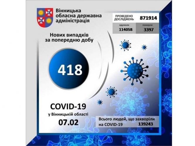 - Загалом на Вінниччині зафіксували 139 тисяч 243 випадки. 418 нових за добу.