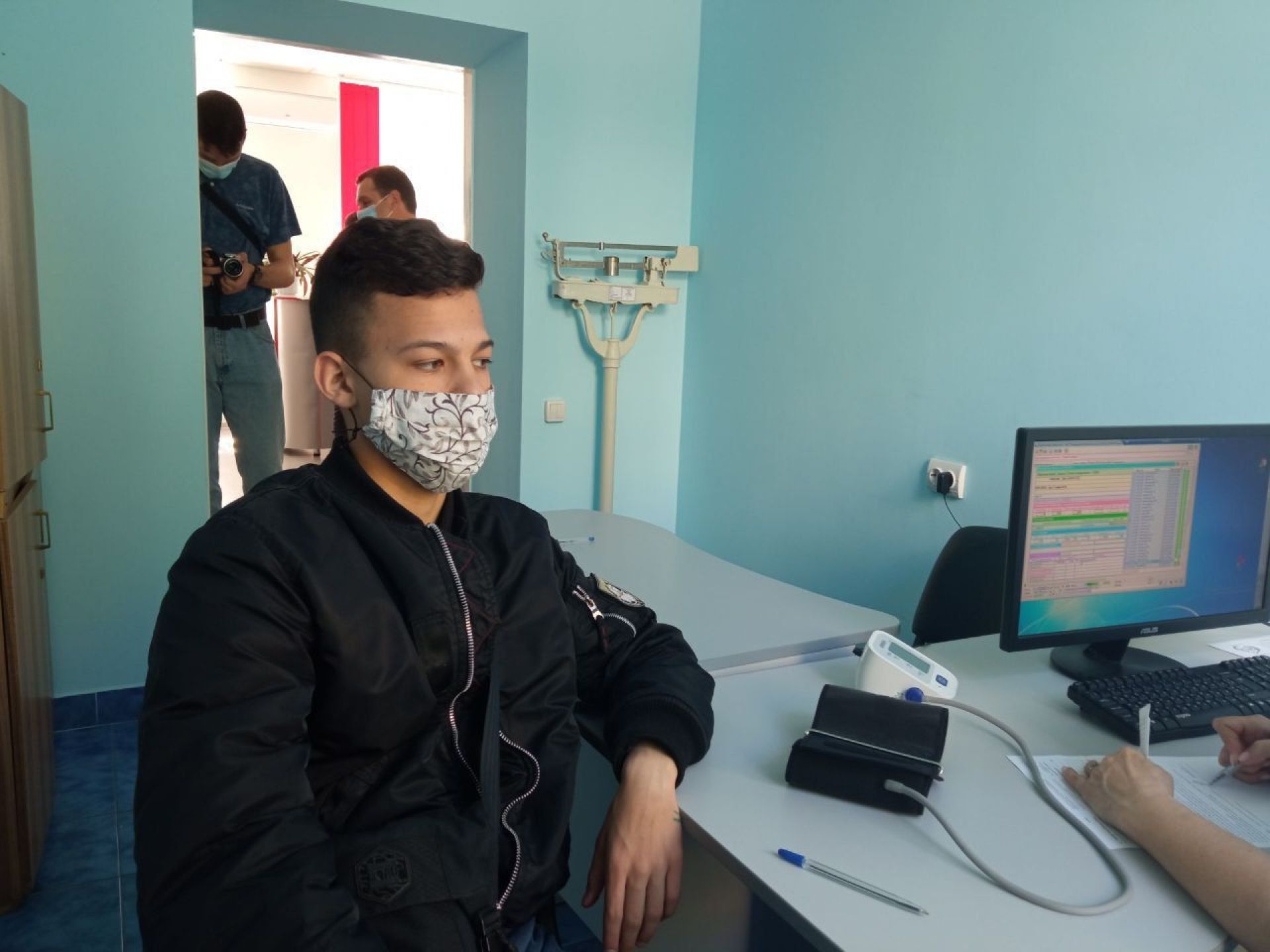 І справді, у зазначений час до стійки реєстратури підійшло трохи менше як 10 юнаків. Взявши необхідні документи, вони почали обхід кабінетами, де їм серед іншого виміряли тиск і взяли кров із пальця.