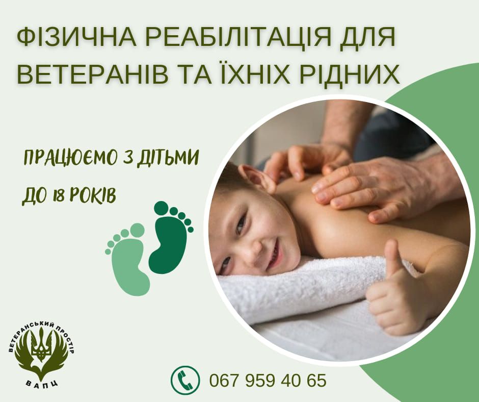 «У чому особливість фізичної реабілітації, яку проводить наш Простір. Працюємо не лише з військовими, але й з їхніми дітьми. Саме так. Наш лікар-реабілітолог має практичний досвід допомоги малятам та підліткам до 18 років», — розповідають у Ветеранському Просторі.
