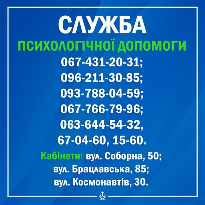 У Вінниці працює психологічна служба підтримки. Номери телефонів психологів