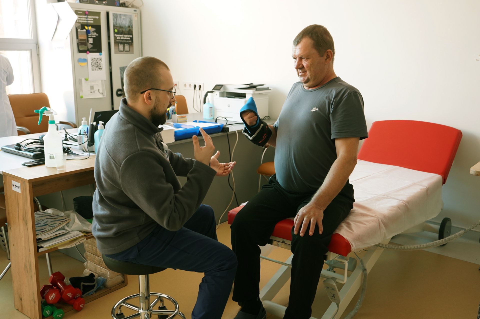 Особливу увагу приділяють відновленню після вогнепальних поранень та складних переломів, де процес може тривати місяцями. Для розробки рук після травм тепер використовують спеціальні ерготерапевтичні столики та станції, що допомагають повернути дрібну моторику. Пацієнти, які вже випробовують нові тренажери, кажуть, що відчувають різницю — заняття стають ефективнішими, а надія на повернення до звичного побуту — реальнішою. Тепер лікарня може забезпечити повний цикл відновлення, не відправляючи людей до інших центрів, що критично важливо для раннього етапу одужання.