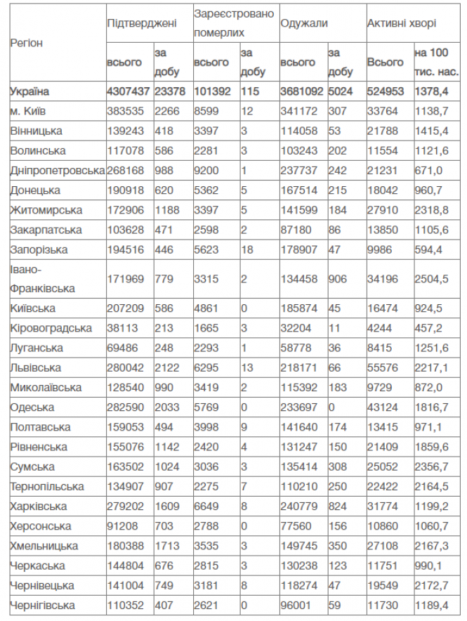 - Кількість інфікованих COVID-19 людей сягає понад 4,3 мільйона, одужали — 3,6 мільйона.