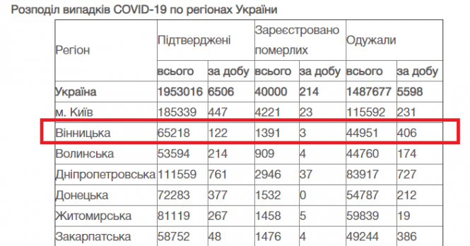 За добу виявили 6 тисяч 506 нових випадків по країні, з них 122 на Вінниччині.