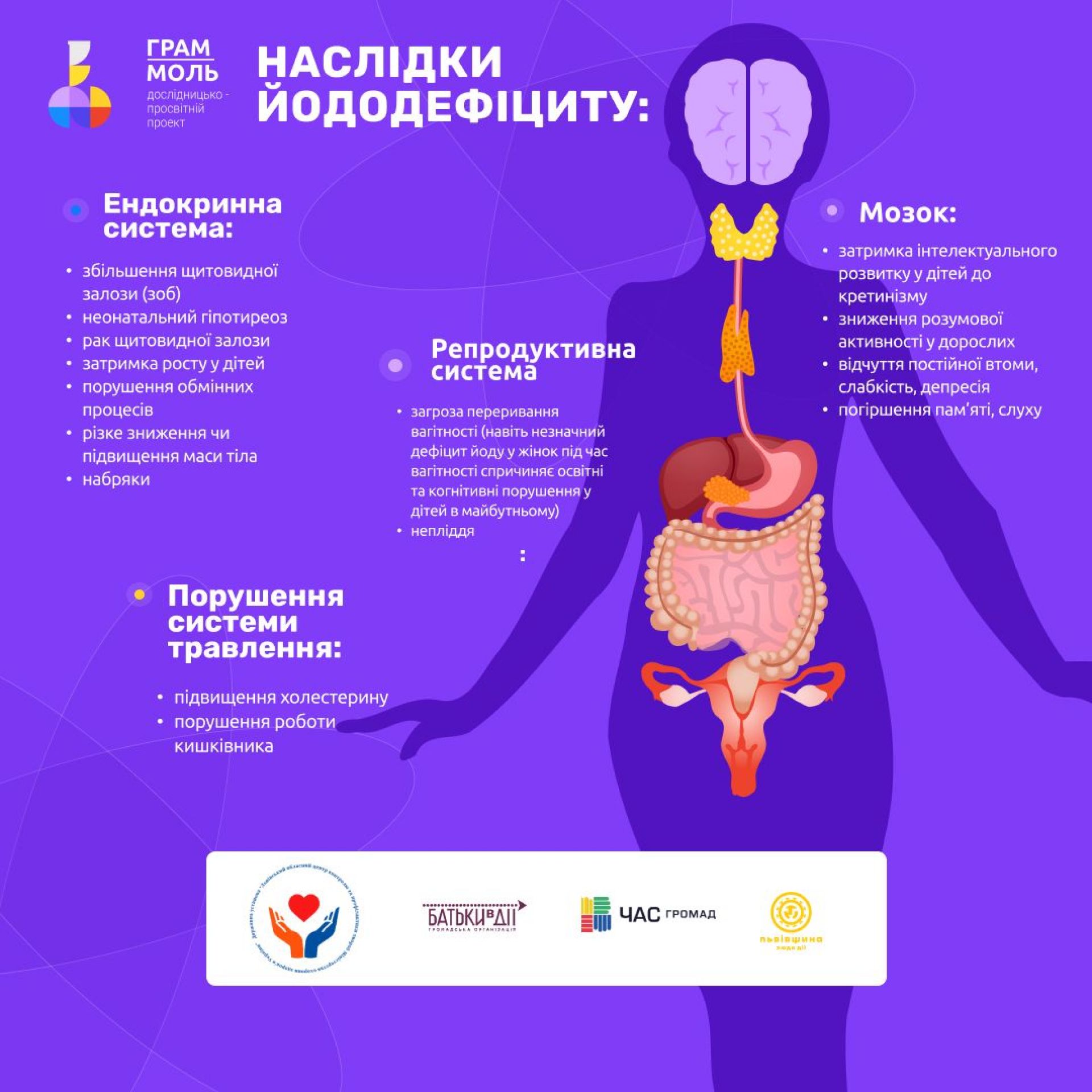 Від нормального йодного забезпечення дитячого організму, що постійно росте, залежить здатність до навчання, інтелектуальної праці і врешті-решт — майбутній інтелект у дорослому віці. При нестачі йоду після школи дітям важко отримати професію і достойний заробіток, у дорослих слабшає імунітет, погіршується пам'ять і працездатність.