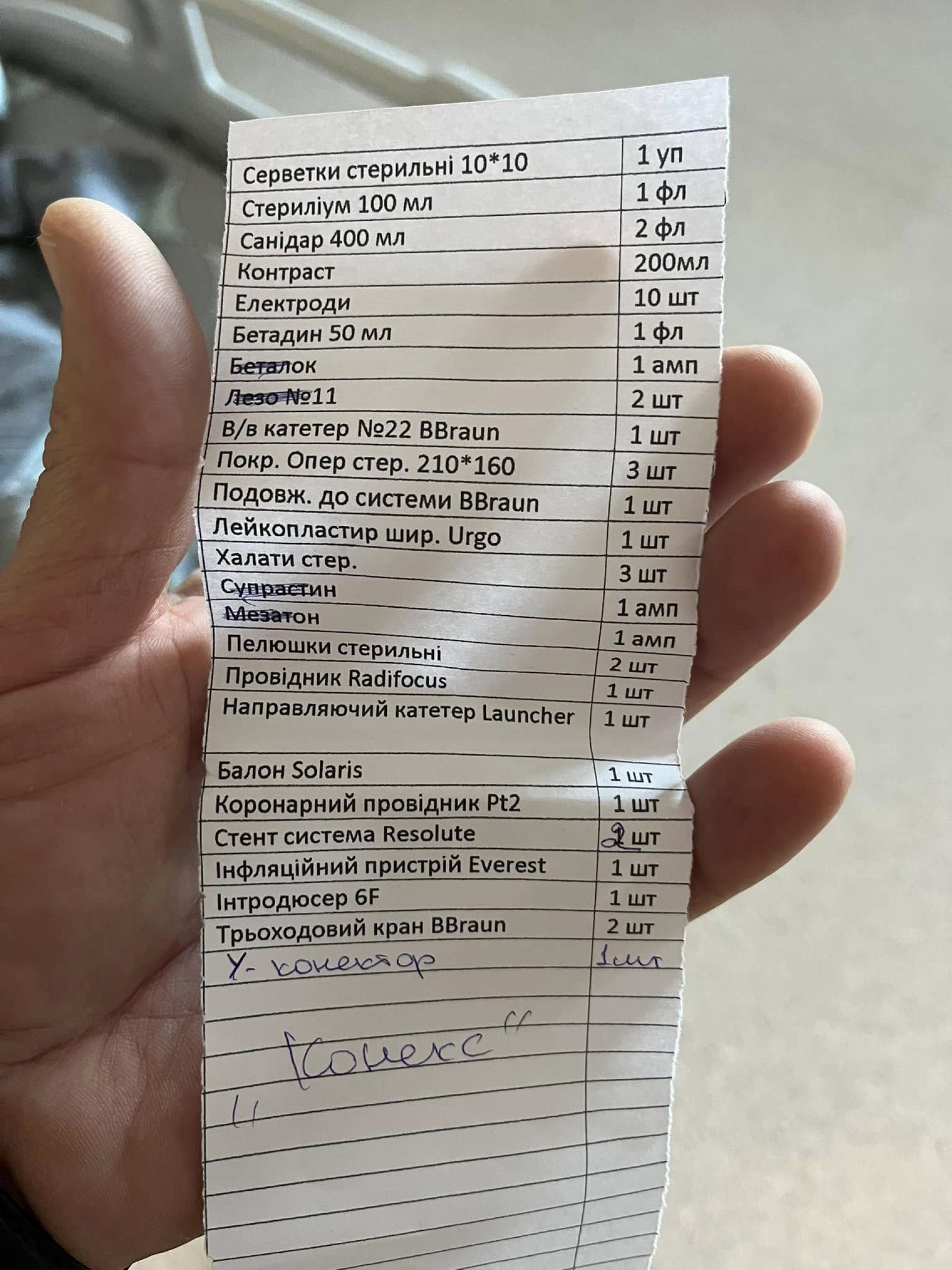 Згідно з повідомленням у соціальних мережах, з пацієнта вимагали 80 000 гривень за лікування та оперативне втручання, а його родичам видали список ліків для самостійного придбання.