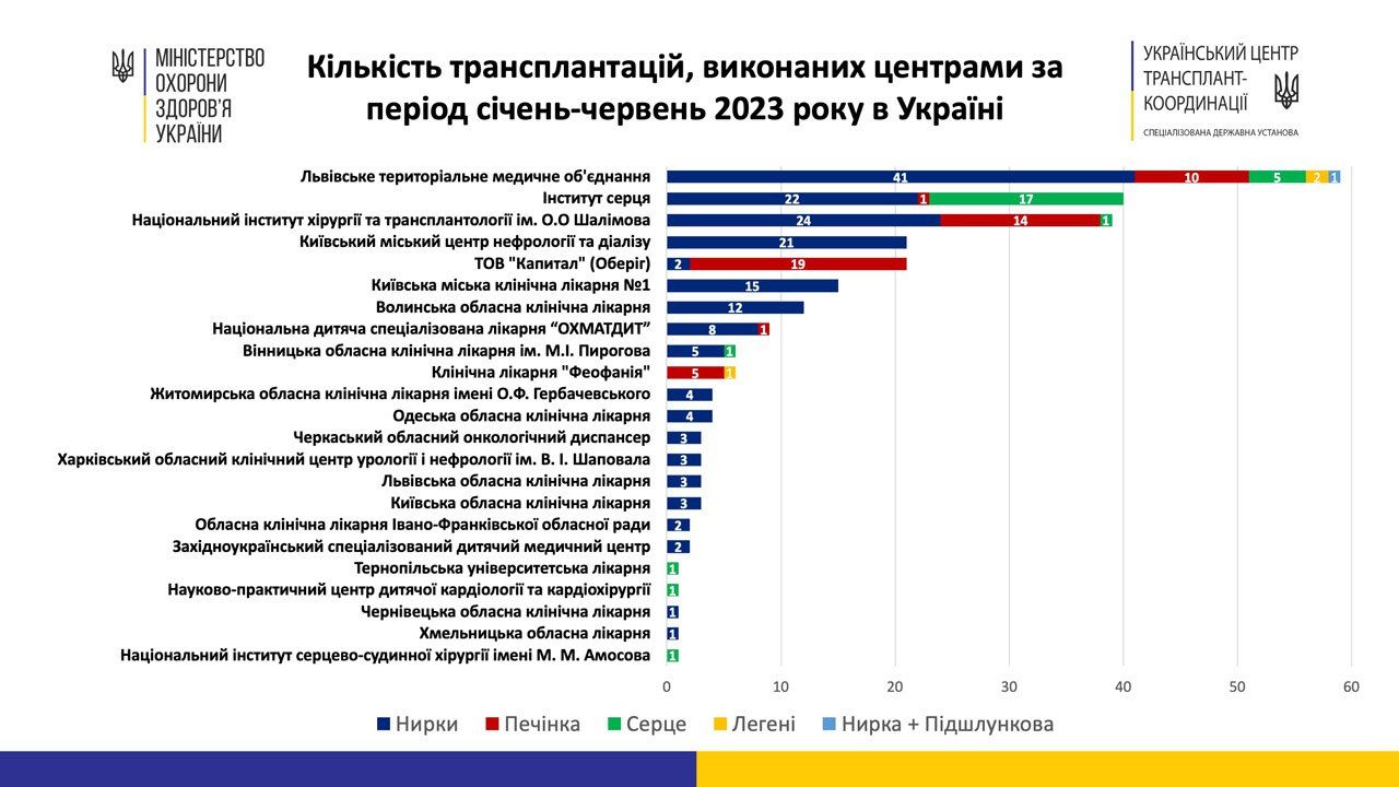 Це результати роботи за шість місяців 2023 року. Такі дані оприлюднив Український центр трансплант-координації, повідомляють на сайті Вінницької ОВА.