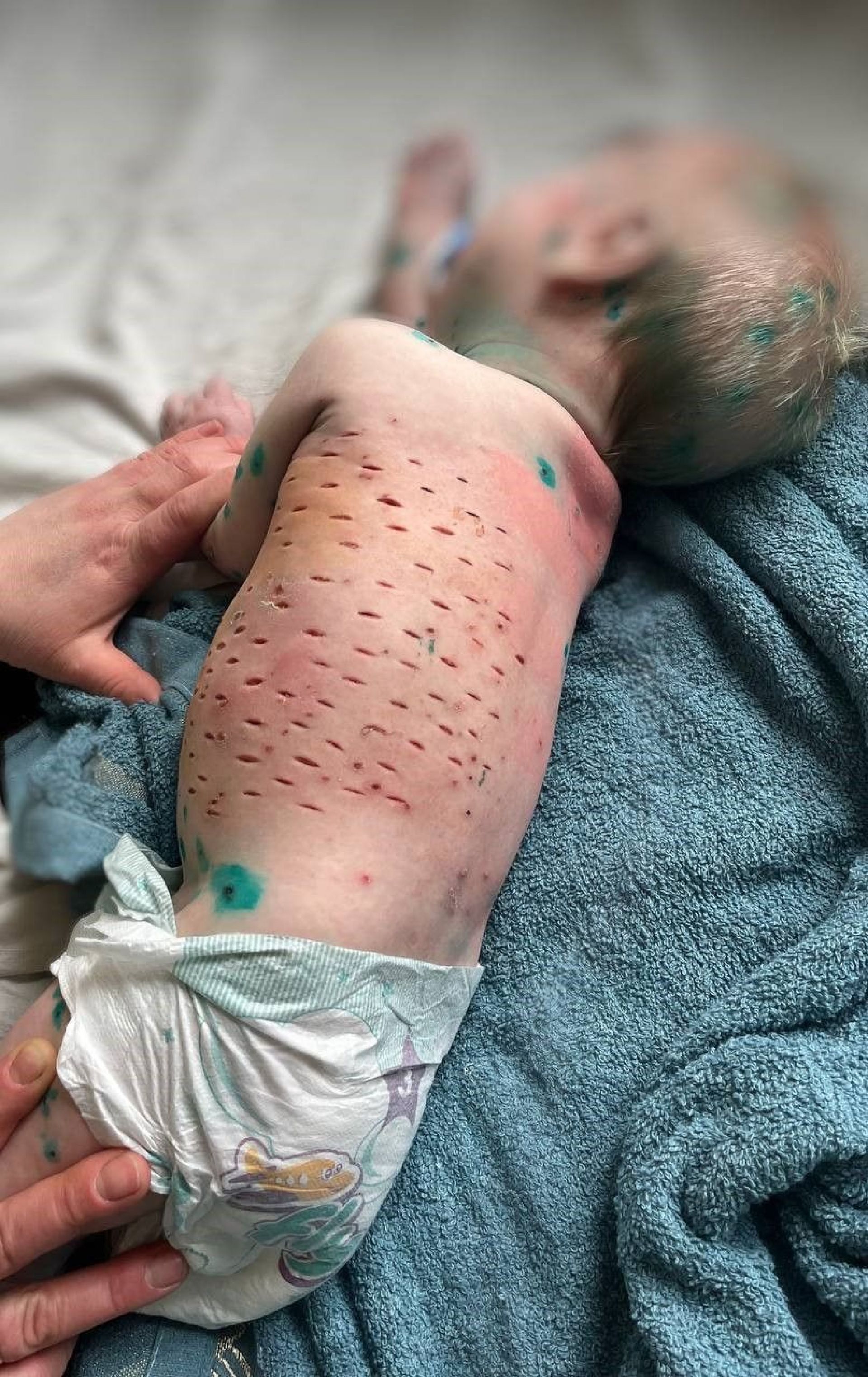 — Під час огляду було виявлено місцеве підвищення температури та болючість ураженої ділянки. За результатами лабораторних досліджень у дитини виявлено підвищений рівень лейкоцитів (15х10^9/л), ШОЕ (25 мм/год) та С-реактивного білка (12 мг/л), що свідчило про виражений запальний процес. Було встановлено діагноз – вітрянкова флегмона, спричинена вторинною бактеріальною інфекцією (Staphylococcus aureus), — зазначають на сторінці медзакладу.