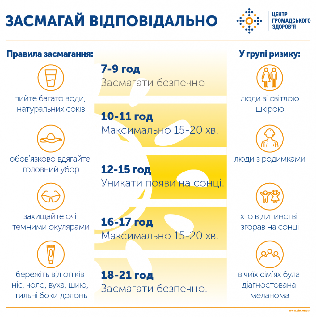 Також лікарка додає, що засмагати потрібно дозовано. Найкращий час — до 10.00 і після 17.00. Перебувати в пік активності сонячних променів не бажано нікому.