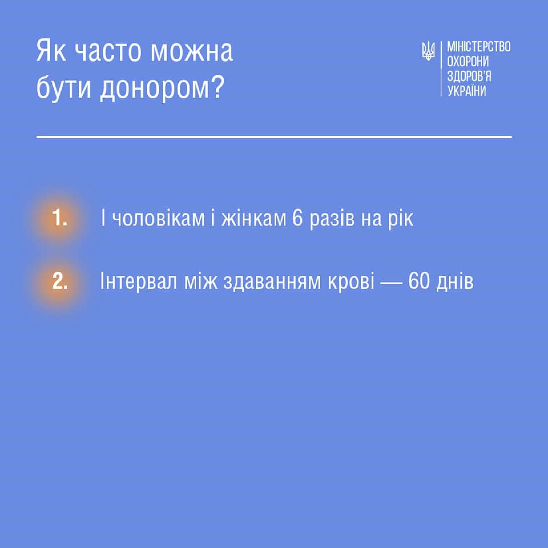 Чоловікам рекомендовано здавати кров не частіше 5 разів на рік, жінкам — чотирьох разів на рік.
