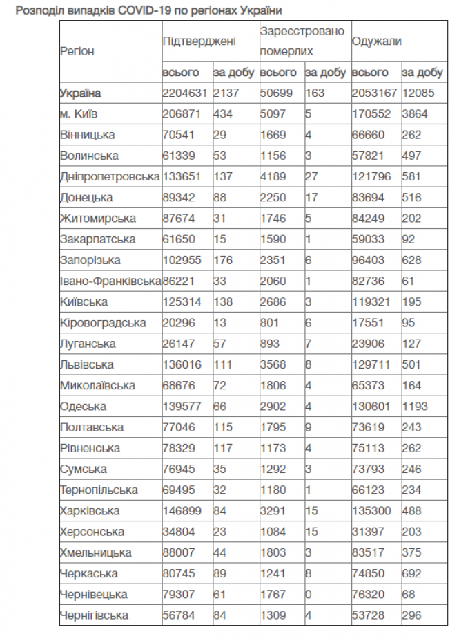 За даними Центру громадського здоров’я станом на 01 червня в Україні зафіксовано 2137 нових підтверджених випадків коронавірусної хвороби COVID-19 (з них дітей – 91, медпрацівників – 56).