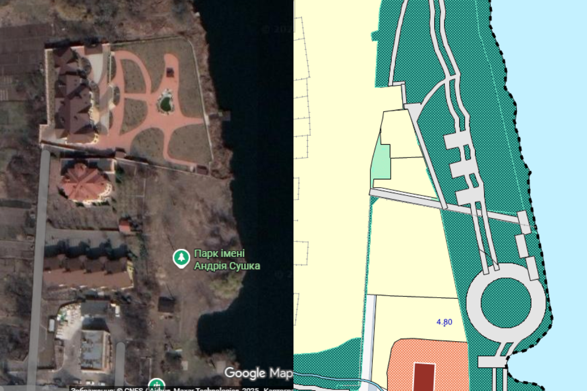Та вже у 2025 році на цьому місці бачимо повноцінний маєток. У коментарі Тетяна Бацьось пояснила, що там все в межах закону.