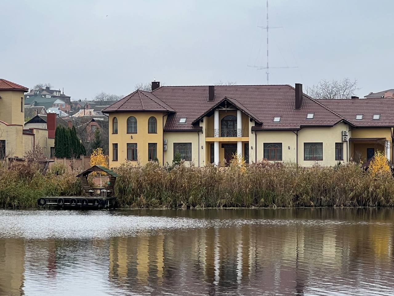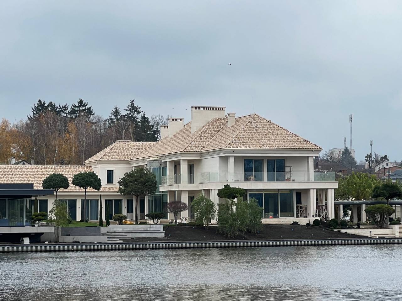 З дороги одразу помітно величезний дім, який буквально «сповзає» до самої річки. Його добре видно і з протилежного берега. Нині будівництво триває: на території працюють будівельники.