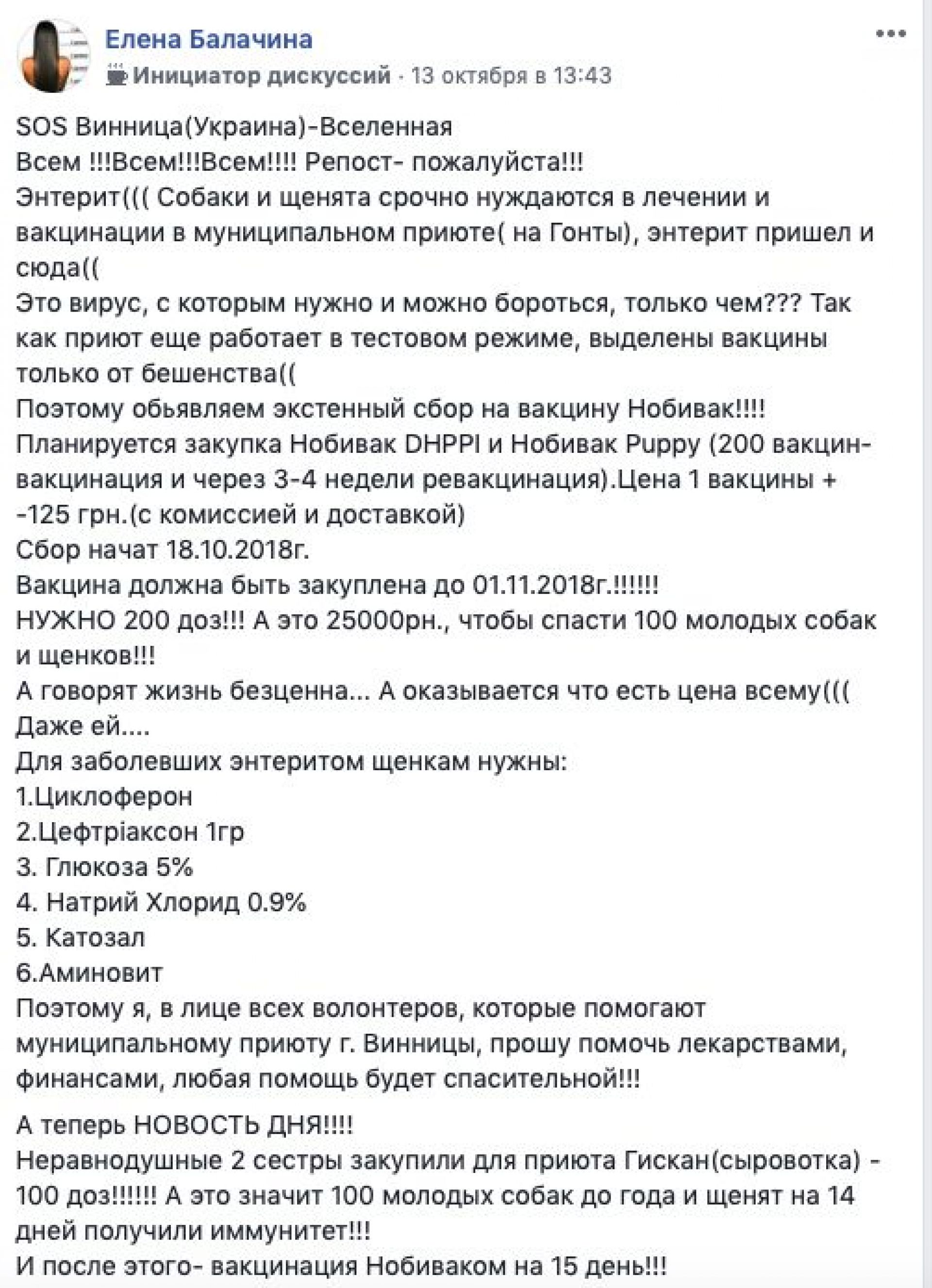 Небайдужі до бездомних тварин заявляють, що собаки голодні й часто зникають. Мова йде про великий виводок щенят, який забрали з вулиці разом із дорослими собаками. За вихідні із 30-ти щенят залишилося всього 14. Загинули цуцики від сезонного вірусу – ентериту.