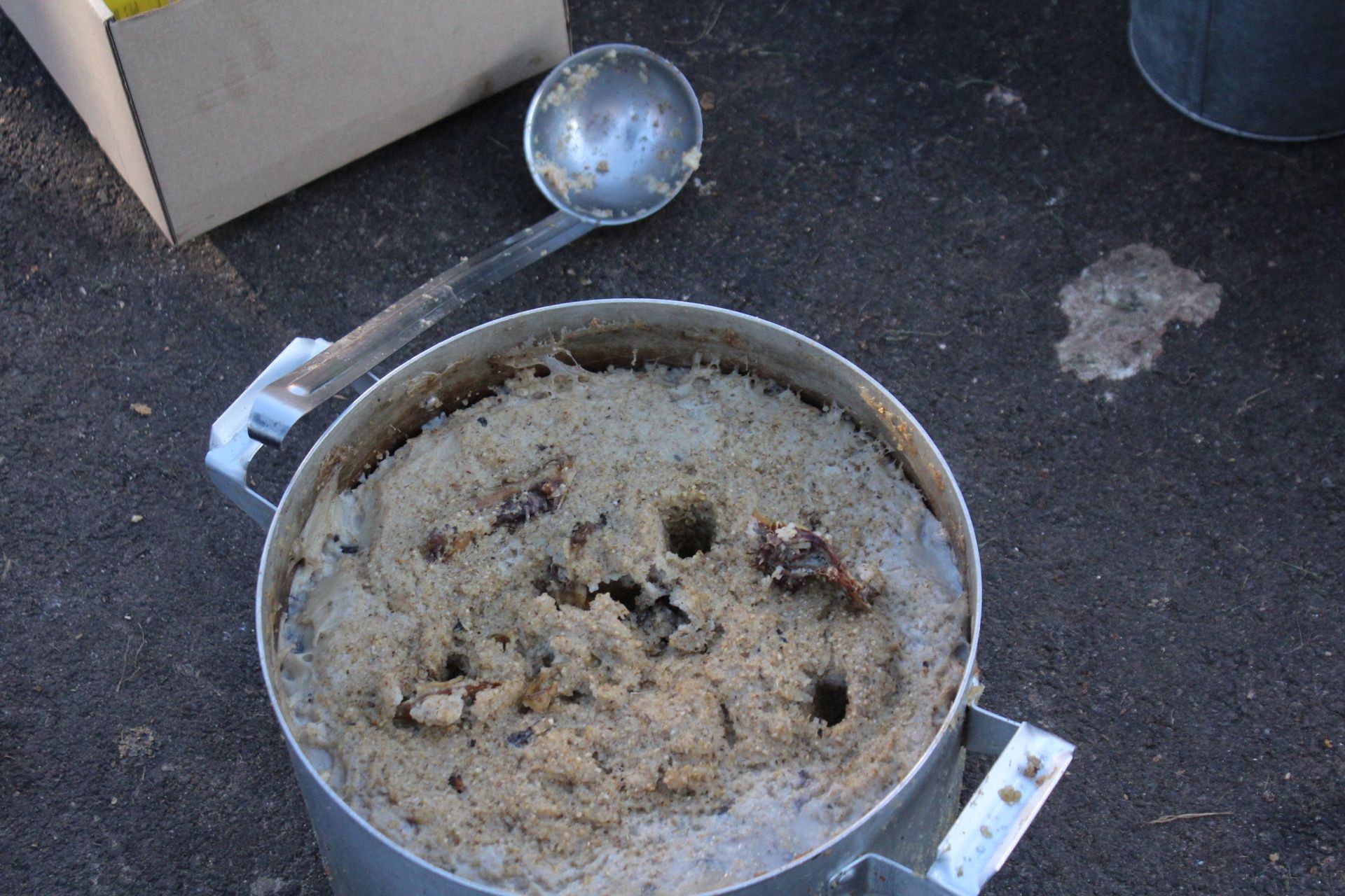 — Кістки та м’ясо нам привезли волонтери. Місто виділяє лише крупу та собачу ковбасу, а цього не вистачає. Ми варимо кашу на кістках із м’ясом. На одній собачій ковбасі тварини худнуть, – говорить Надія.
