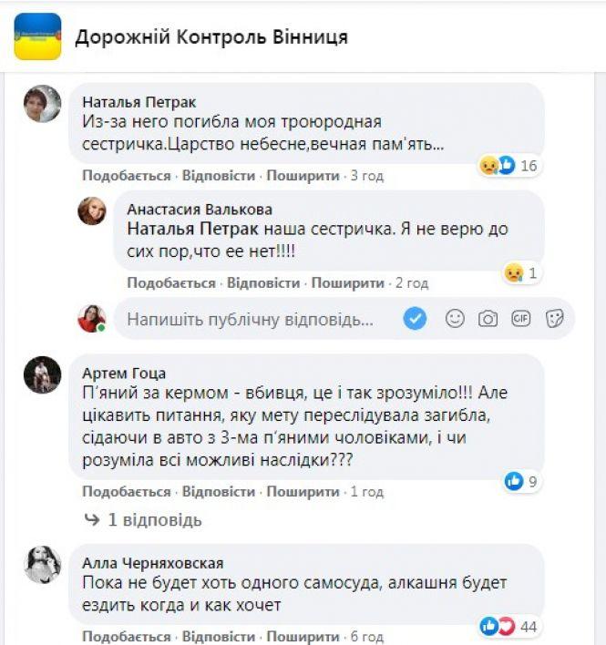 У коментарях під дописом у групі Дорожній Контроль Вінниця односельчани жінки пишуть: «У цієї квіточки (прим.ред.: загиблої в аварії) залишився маленький хлопчик, який закінчив перший клас. Я дуже добре знаю цю родину. Це була гарна господиня, мама і просто добра людина. Вічна пам'ять. Співчуття рідним та близьким».