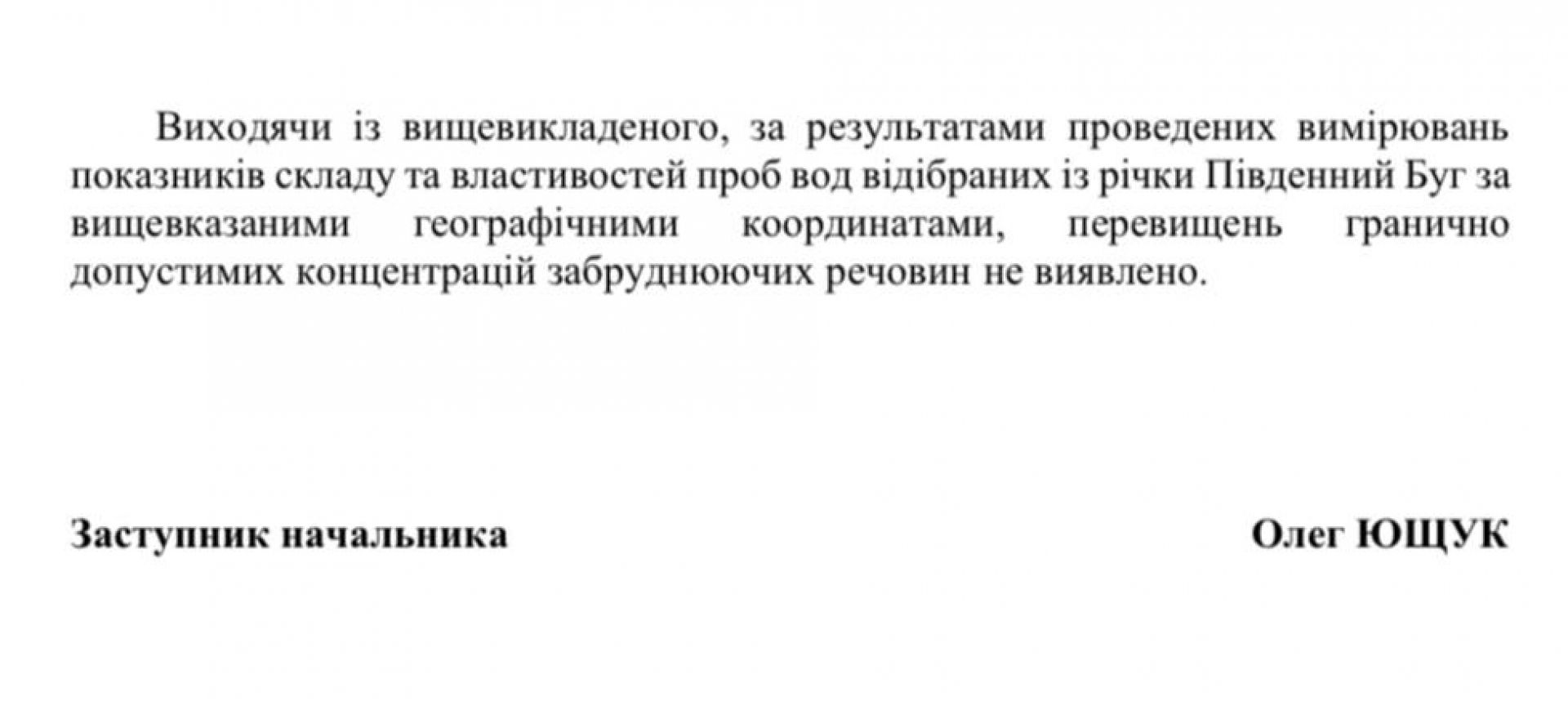 Щодо перевірки, яку проводили у 2024 році й визначили перевищення азоту амонійного, у водоканалі додали, що другий і третій відбір цього не підтвердили — у контрольних створах нижче за течією показники були в нормі.