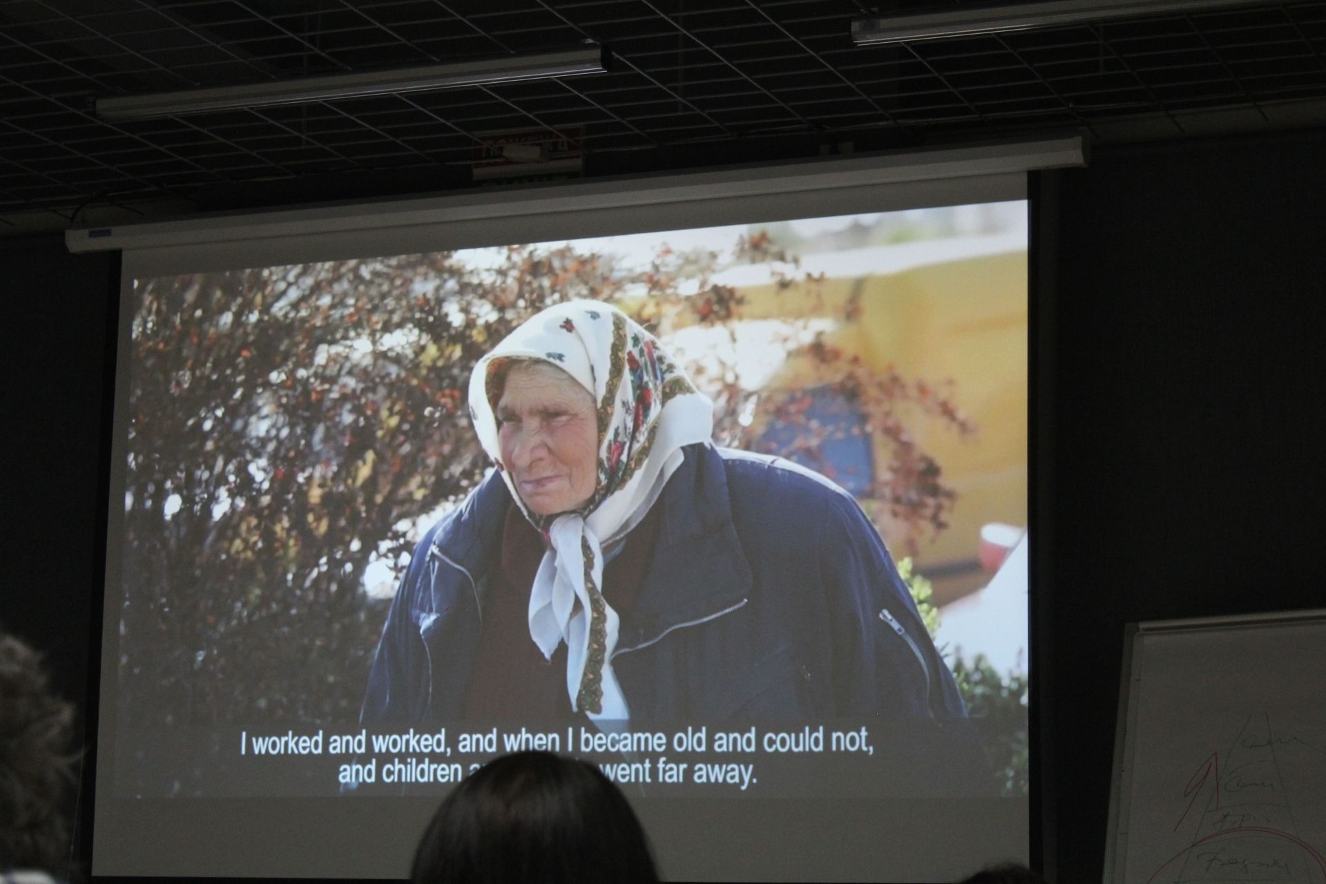 На зустрічі учасниками показали ролик про шістьох безпритульних жінок та їх історії. Всі жінки на відео проживають поруч з нами, у Вінниці. Багато хто з учасників презентації пустив сльозу, коли дивилися це відео.