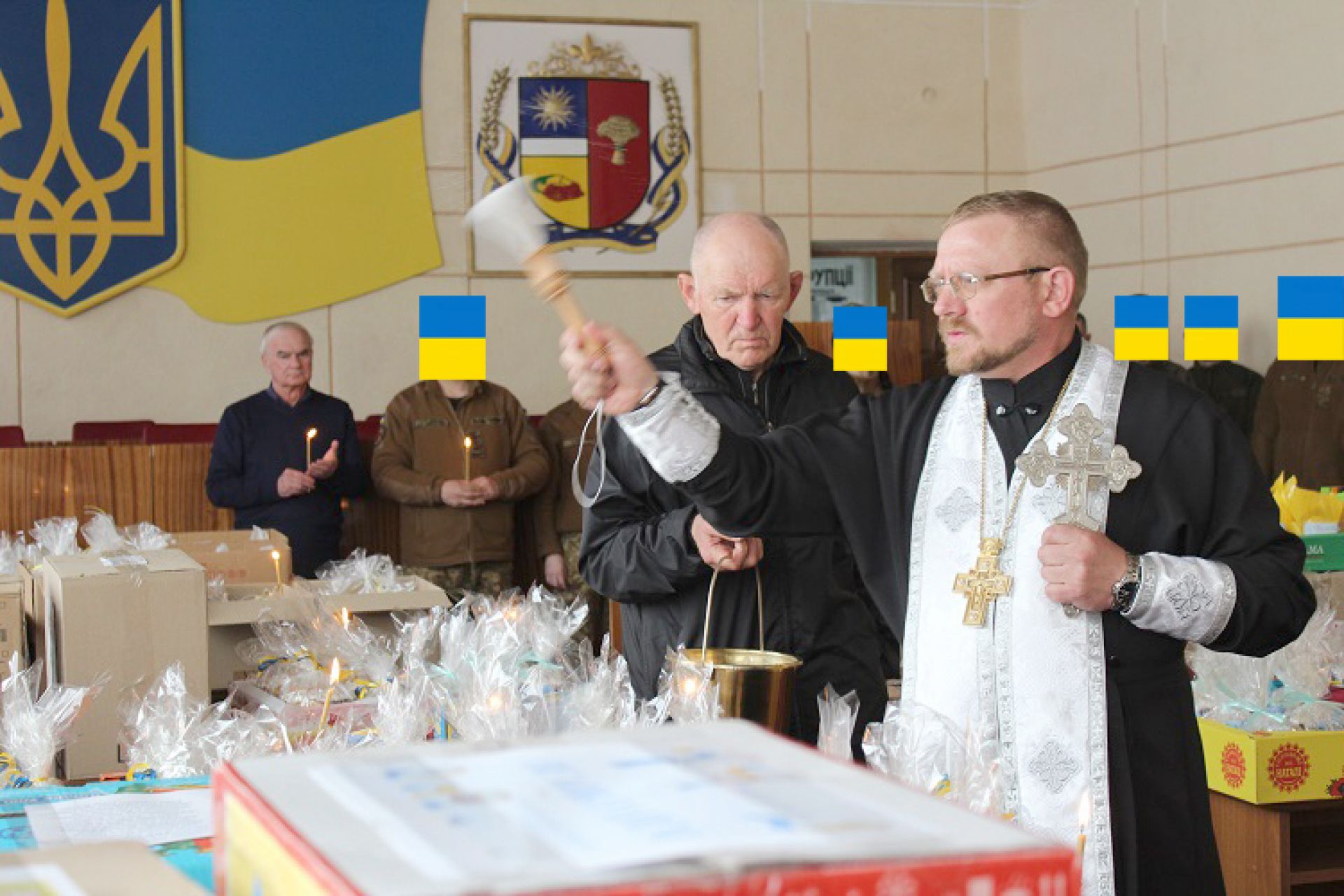 Настоятель храму святого Миколая Чудотворця Православної Церкви України, протоієрей Орест Шпак, здійснив чин освячення святкових хлібів та благословив передані гостинці.