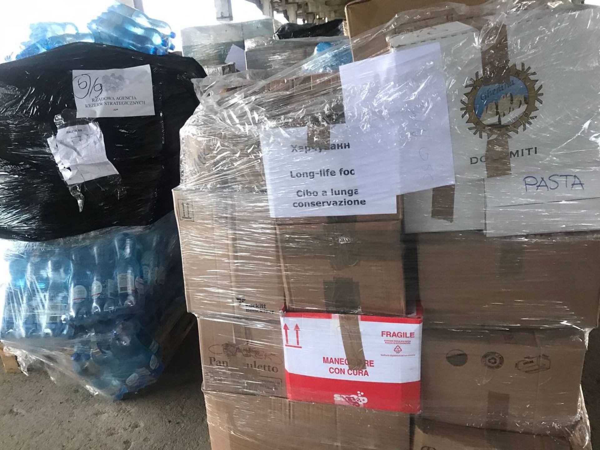 У гуманітарному вантажі — ліки та медикаменти першої необхідності: антибіотики, кровоспинні препарати, витратні матеріали, засоби особистої гігієни. Значна частина — продукти харчування: соки, крупи, вода, м'ясна продукція.