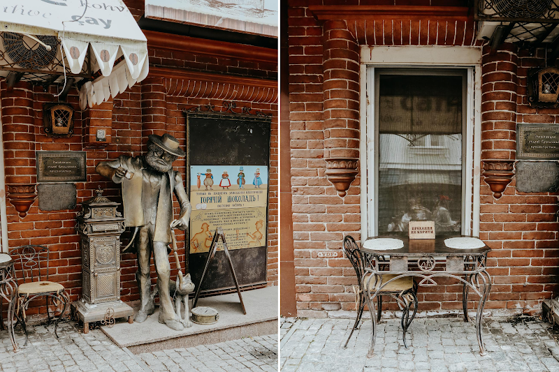 Кафе-музей «Пан Заваркін і син». Це і мистецький салон, і крамничка колоніальних товарів, і навіть музей-туалет. Біля входу — пам’ятник бідному євреєві, в якого хитрий кіт Шльома цупить сосиски. Місце з цікавою історією, смачною кавою і десертами.