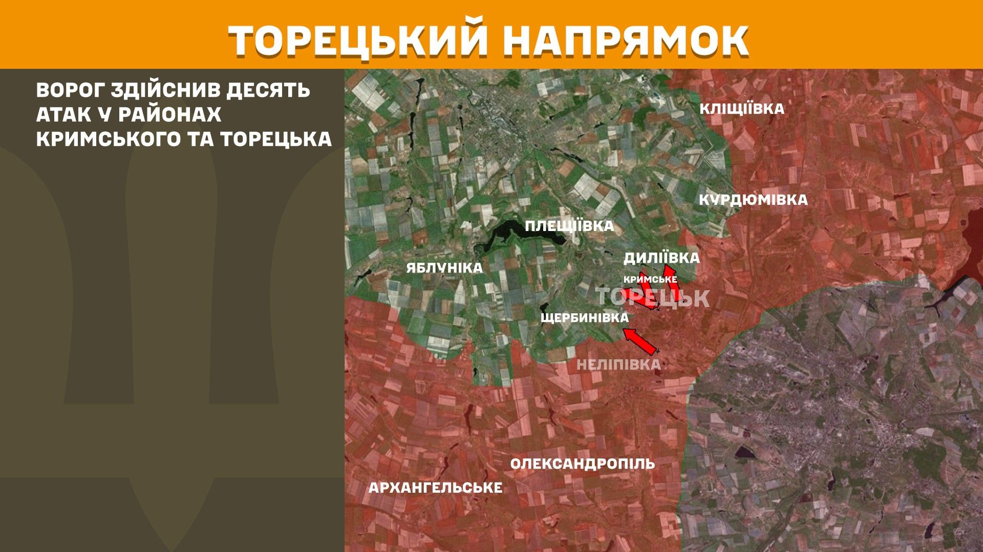 На Торецькому напрямку ворог здійснив десять атак у районах Кримського та Торецька.