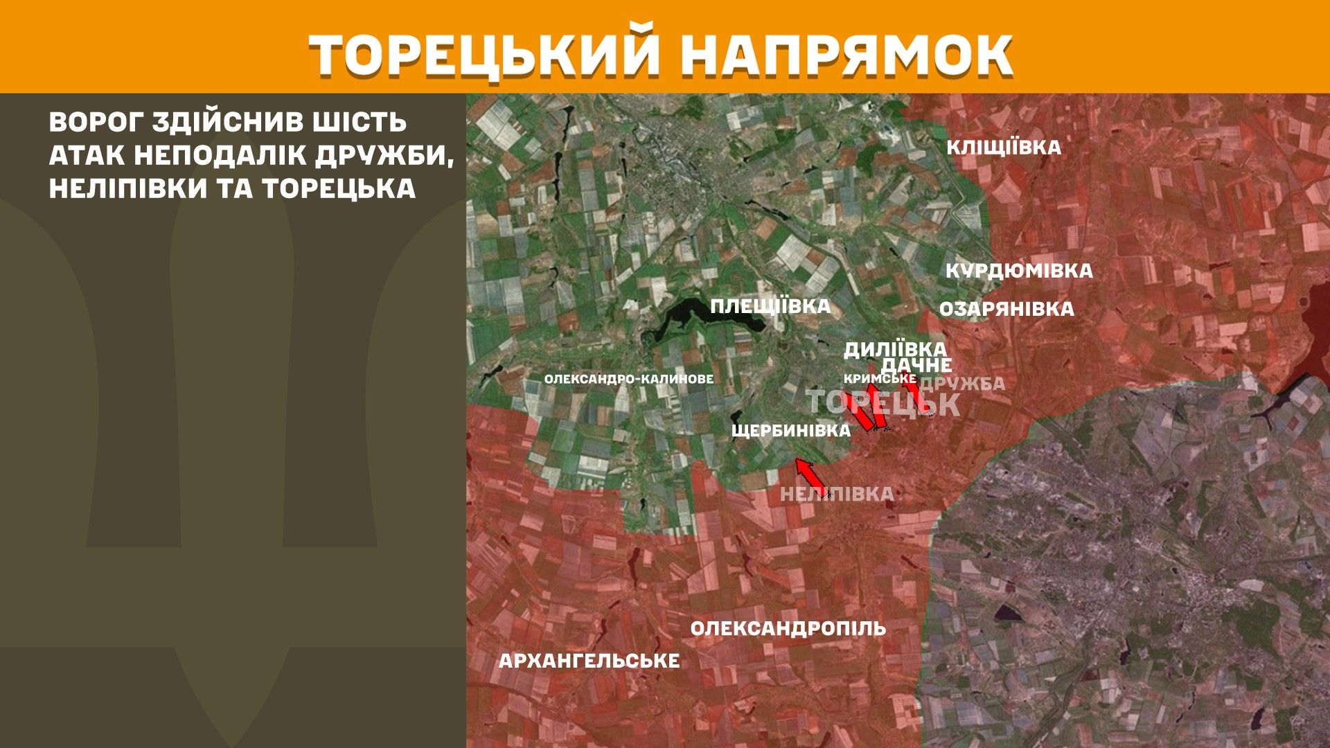На Торецькому напрямку ворог здійснив шість атак неподалік Дружби, Неліпівки та Торецька.