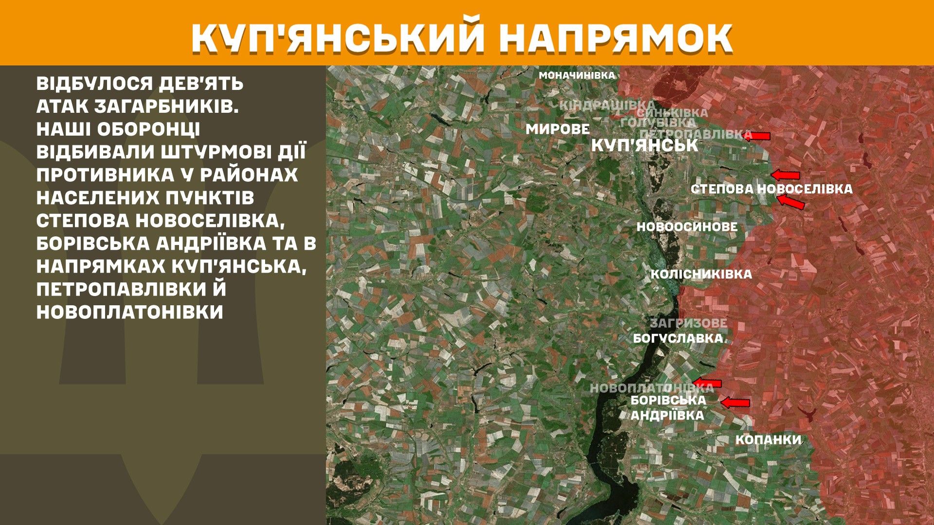 Куп’янський напрямок: Відбулося 9 атак росіян.