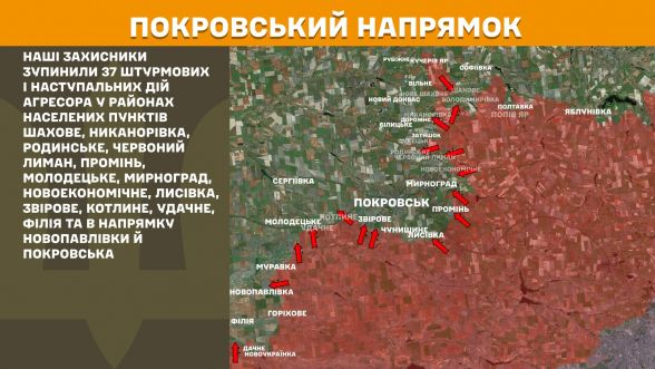 - Покровський напрямок: Наші захисники зупинили 37 штурмових і наступальних дій.