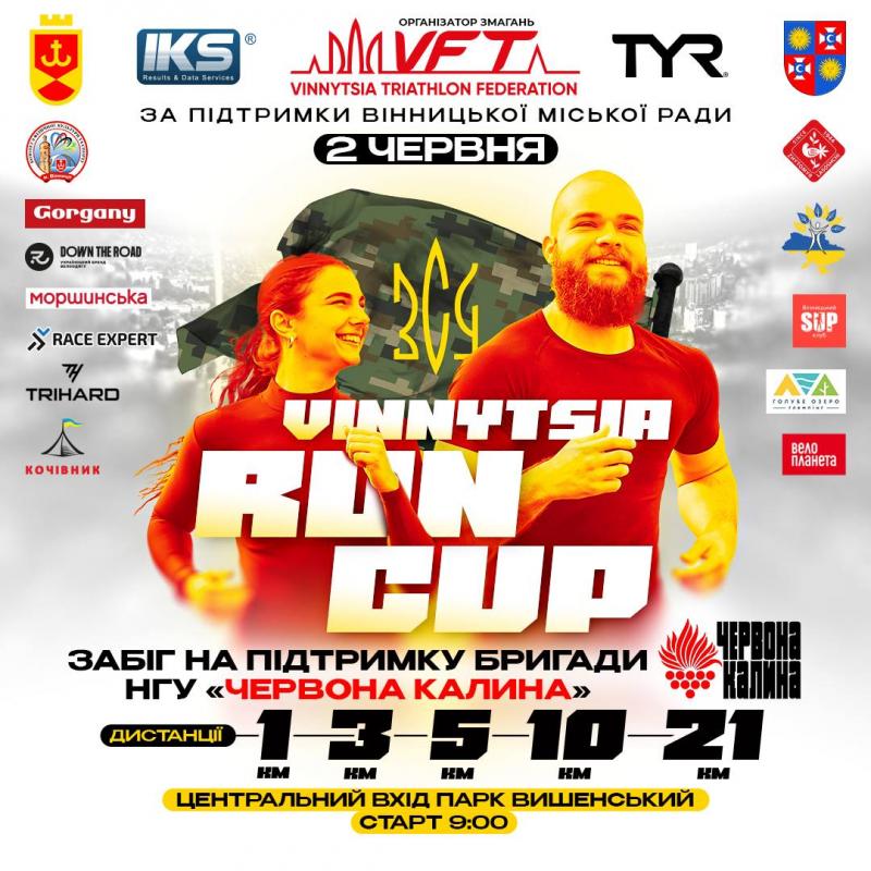 2 червня Вінницька обласна федерація триатлону за підтримки Вінницької міської ради проведе у Вінниці благодійний забіг Vinnytsia Run Cup / Кубок Вінниці з бігу.