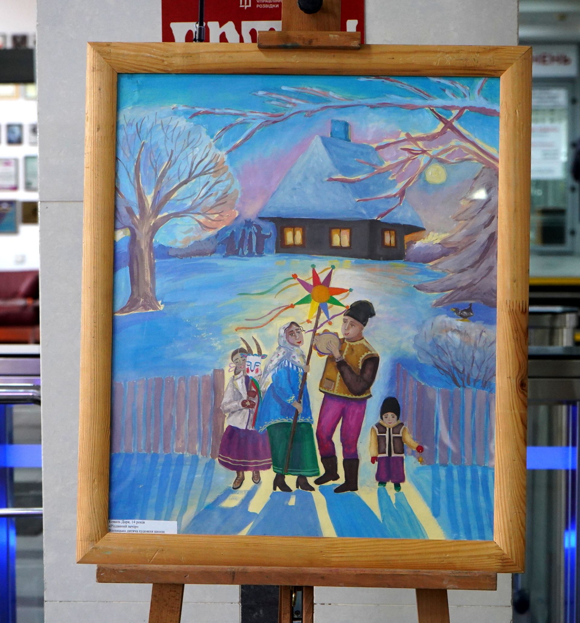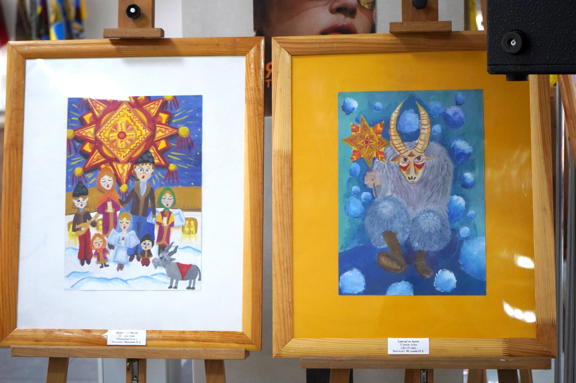 Юні митці зосередили увагу на ключових елементах українського святкування. На полотнах можна побачити різдвяну зорю, дідуха, вертепних персонажів та традиційне вбрання. Кожна робота відображає родинні традиції: від приготування обрядових страв до святкових гулянь у громадах.