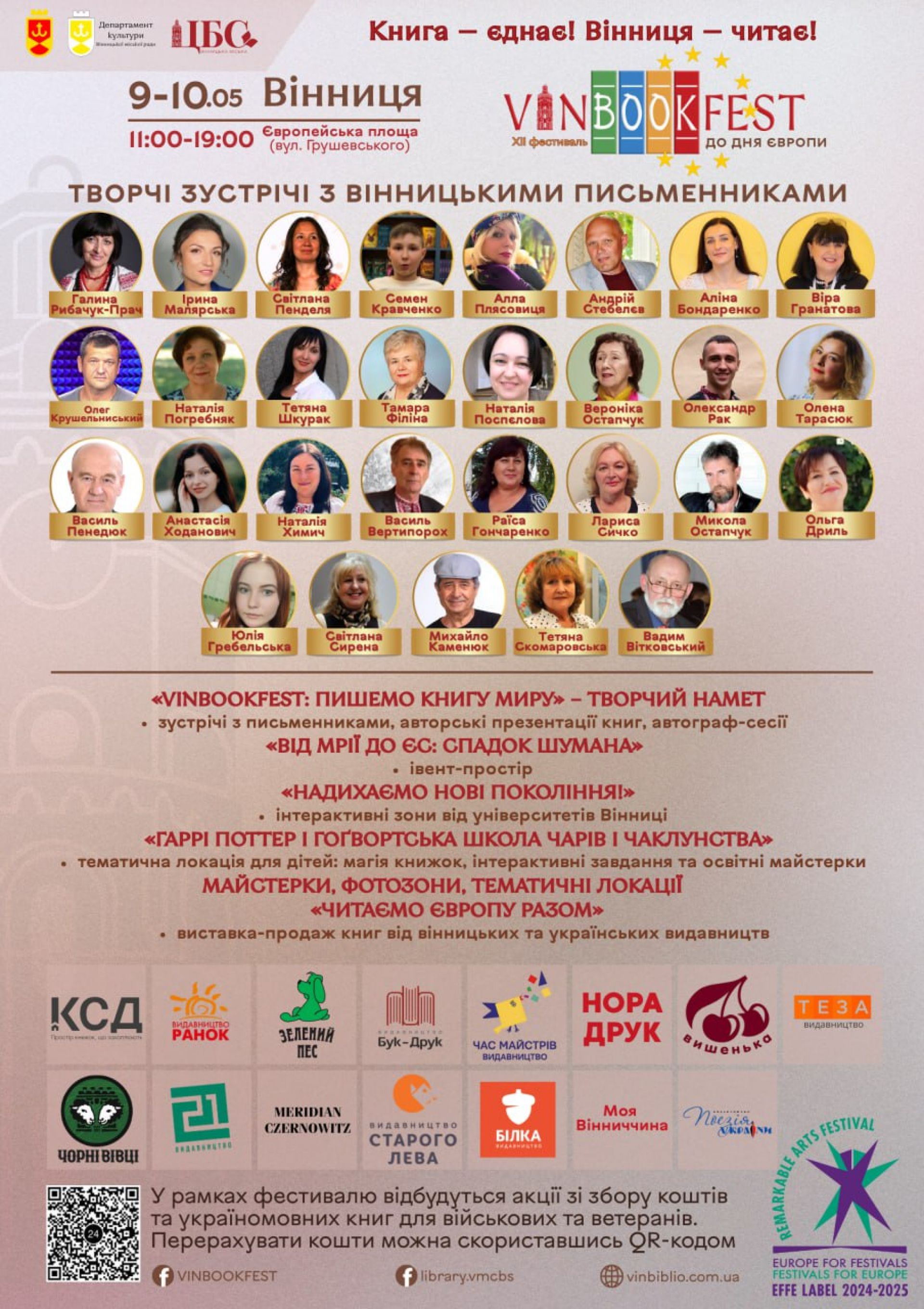 - Вінниця 9-10 травня стане центром книжкового фестивалю VinBookFest, присвяченого популяризації читання та єднанню через книгу.
